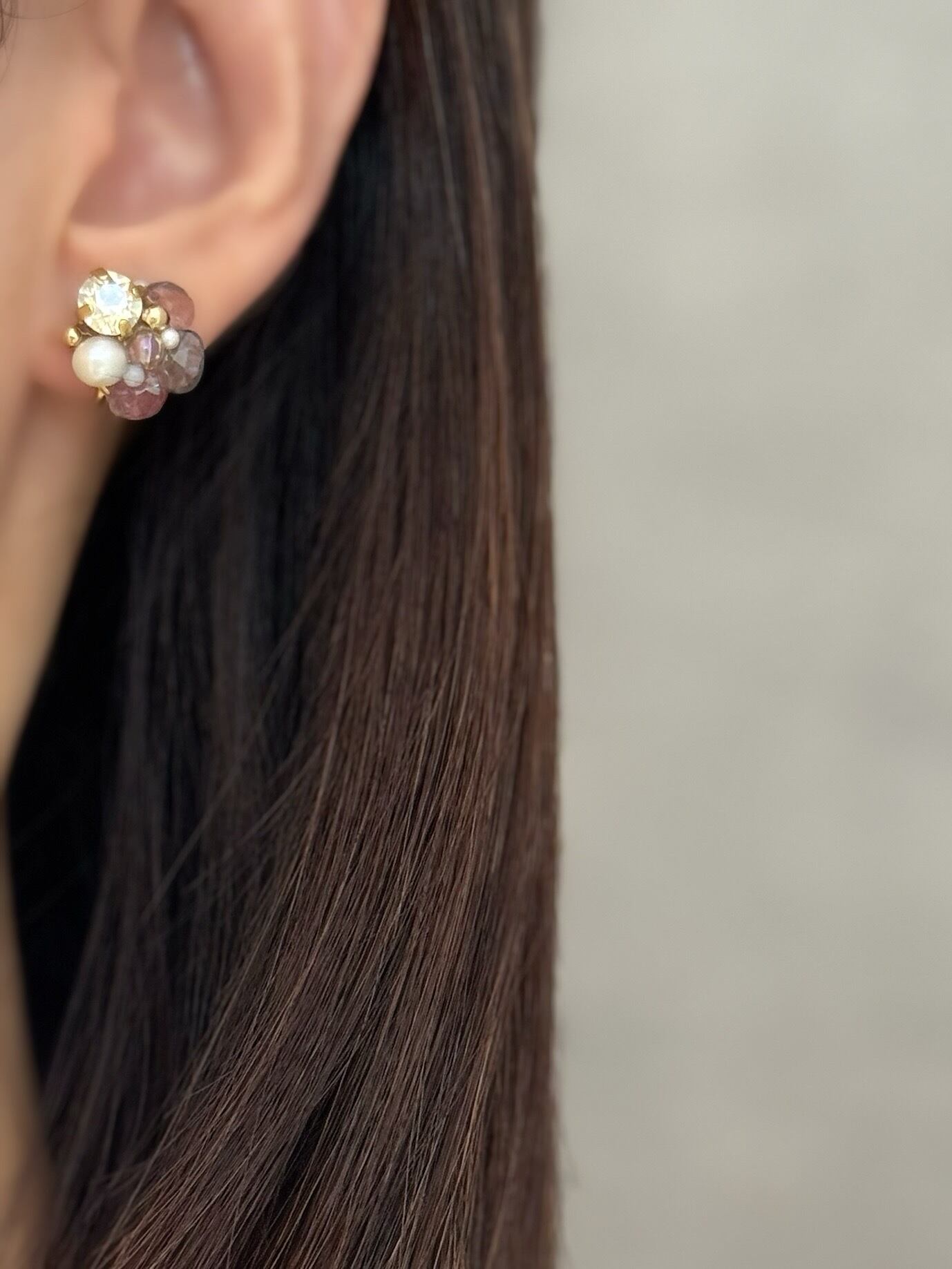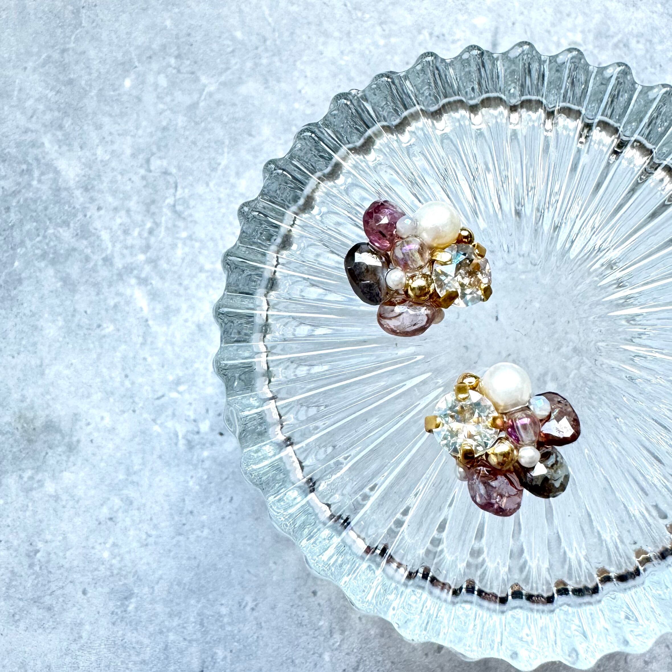 スピネルとスワロフスキーのブーケピアス/イヤリング