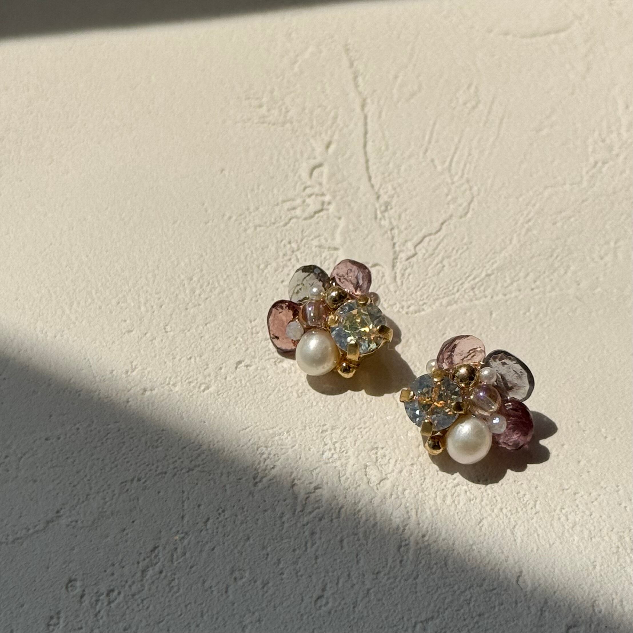 耳元にそっと寄り添う、小さな花束のような耳飾り。