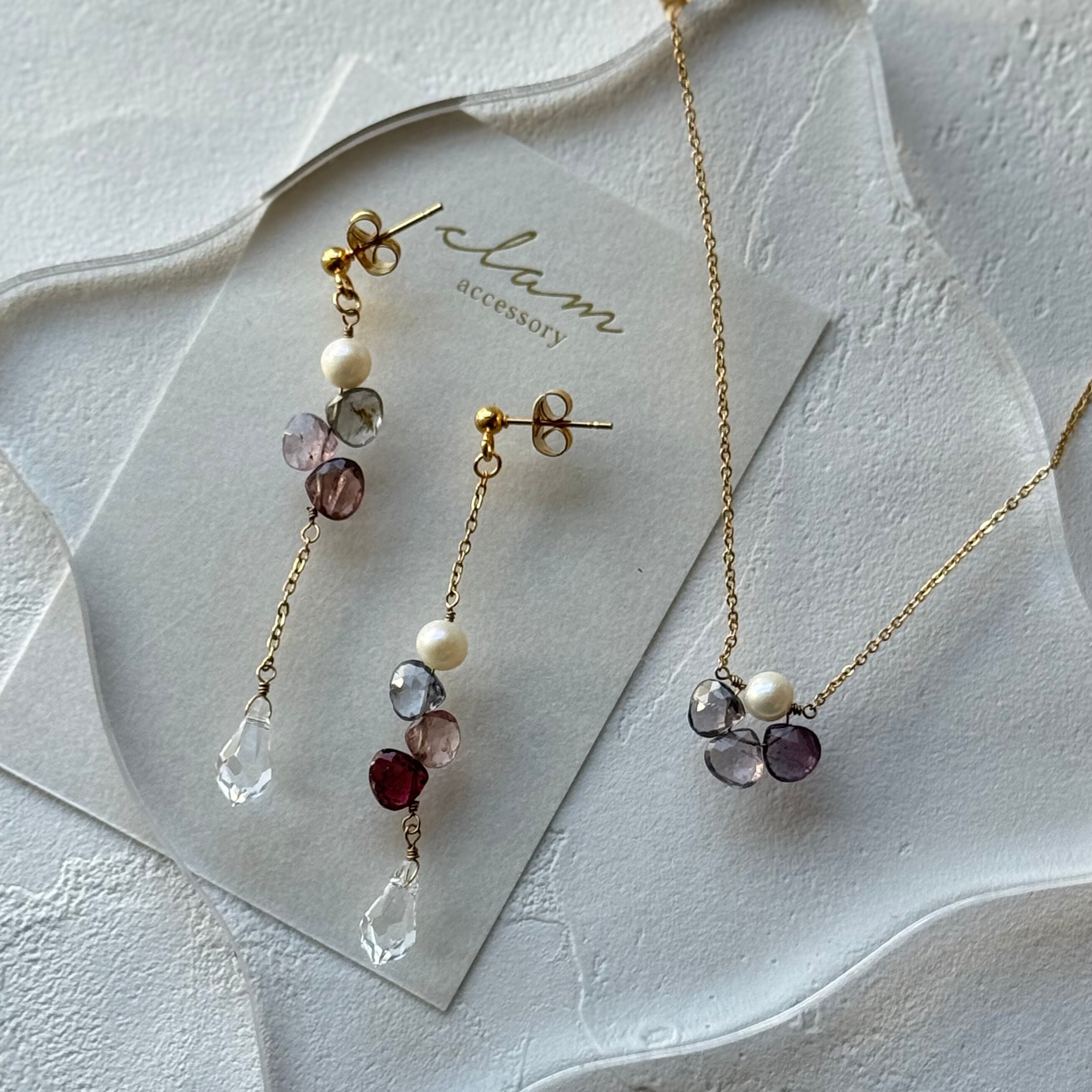 【ネックレス&耳飾り】スピネルネックレス&揺れるピアス/イヤリング