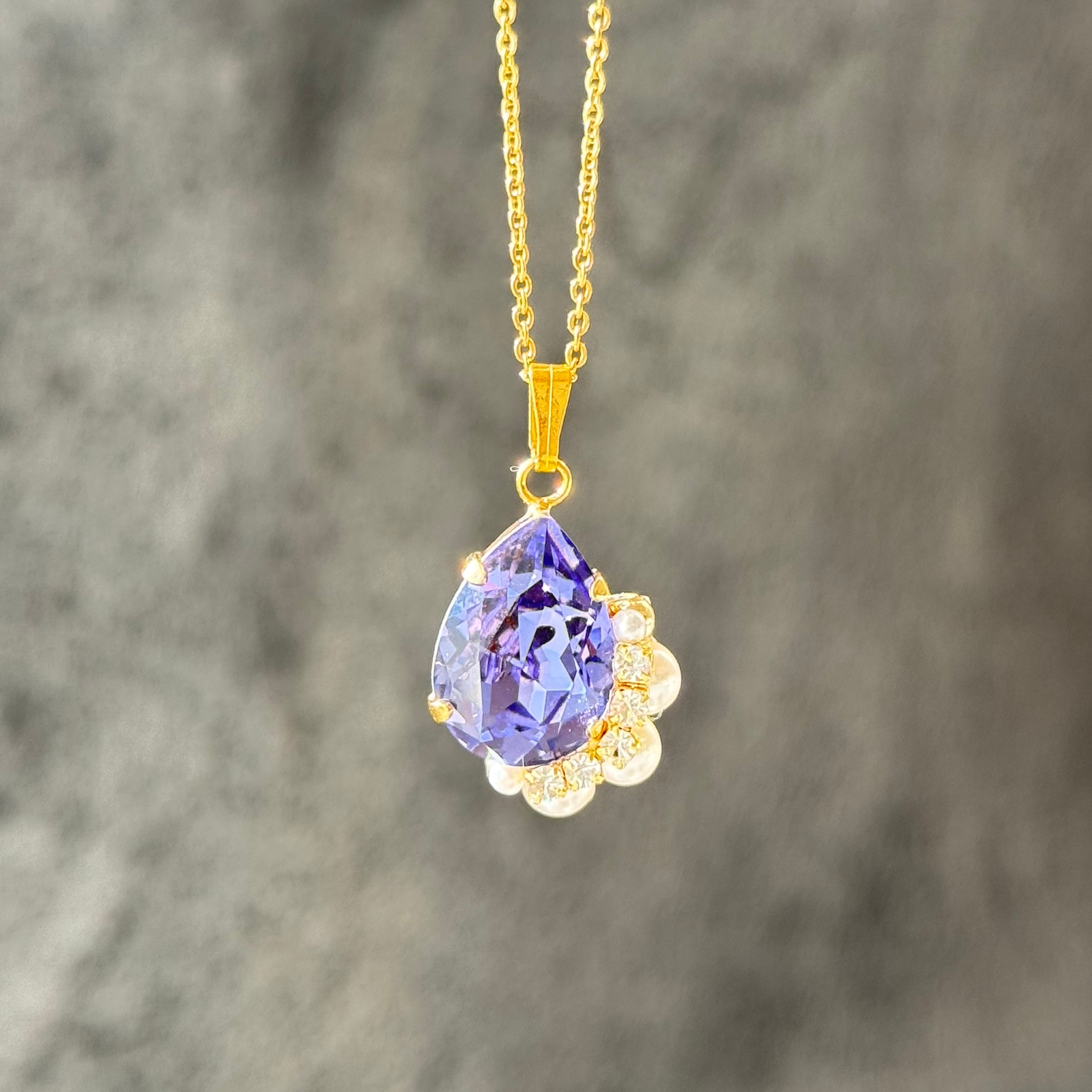このタンザナイトビジューのネックレスをお作りしました