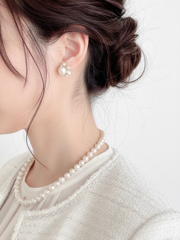 • 気兼ねなく使える: 本真珠のようにデリケートすぎないため、汗をかく場面や雨の日も安心。4シーズン、お仕事やランチなど日常使いにも気負わずお使いいただけます。
