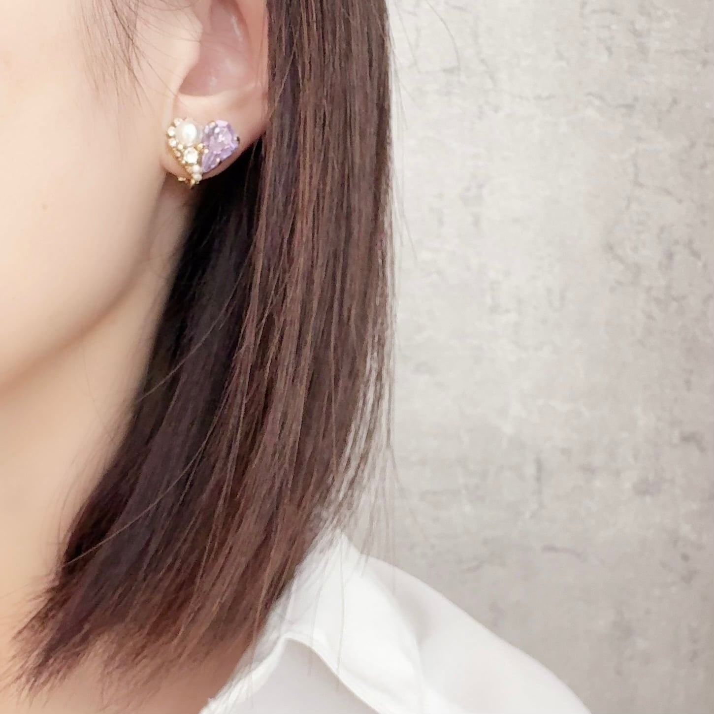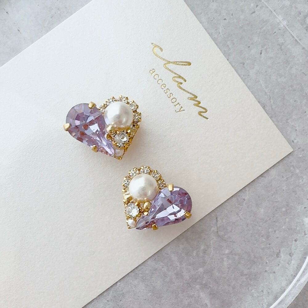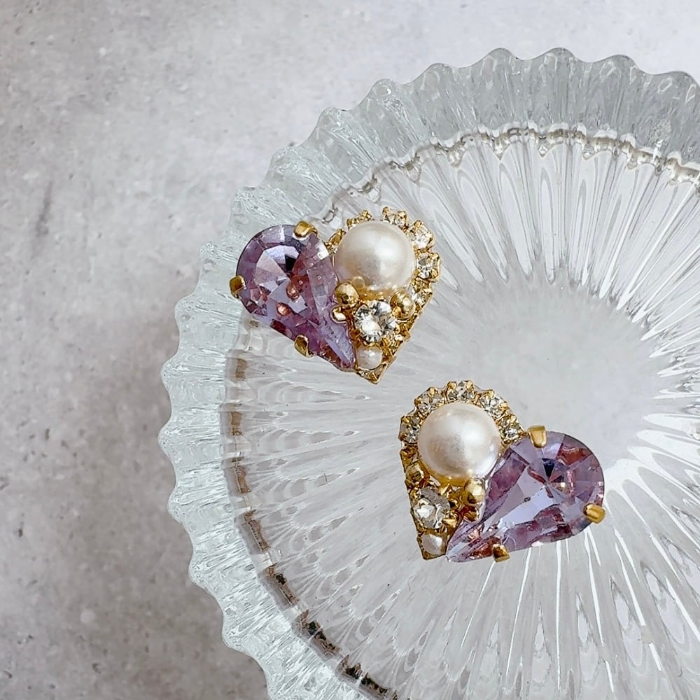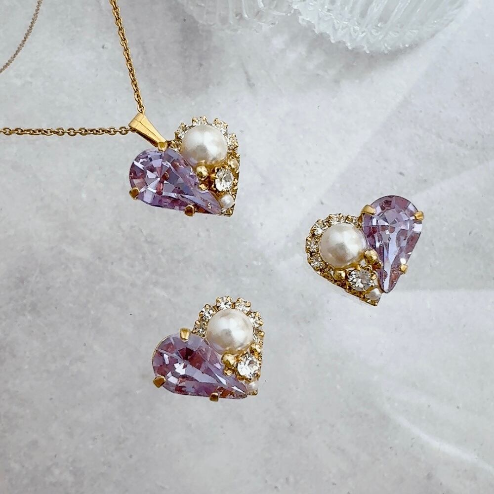 ハートモチーフが控えめに輝き、品よく顔まわりを彩ります。