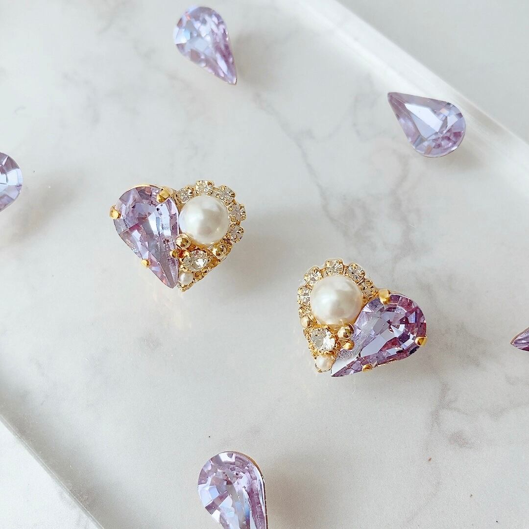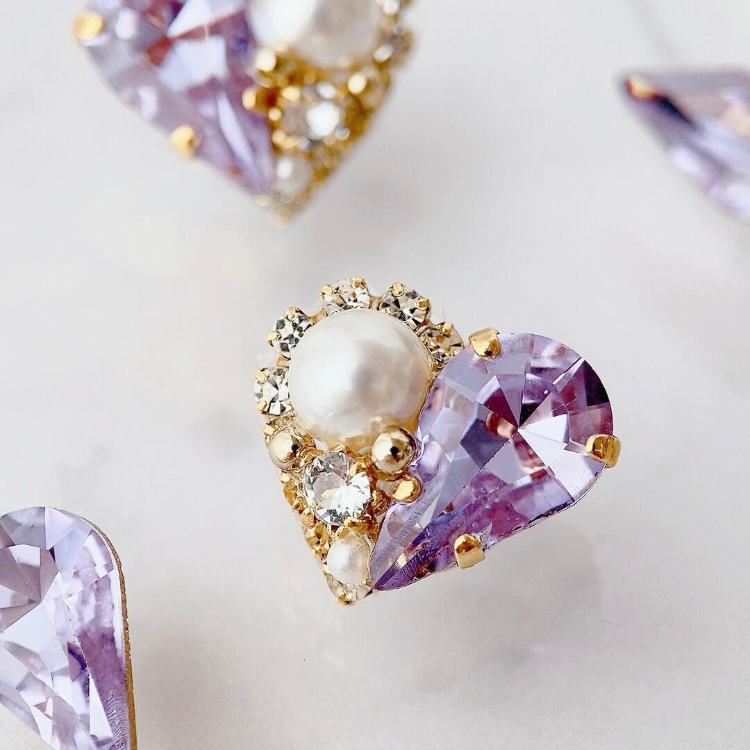 可憐なハートモチーフに、繊細なダイヤレーンとクリスタルパールをあしらったデザイン。
