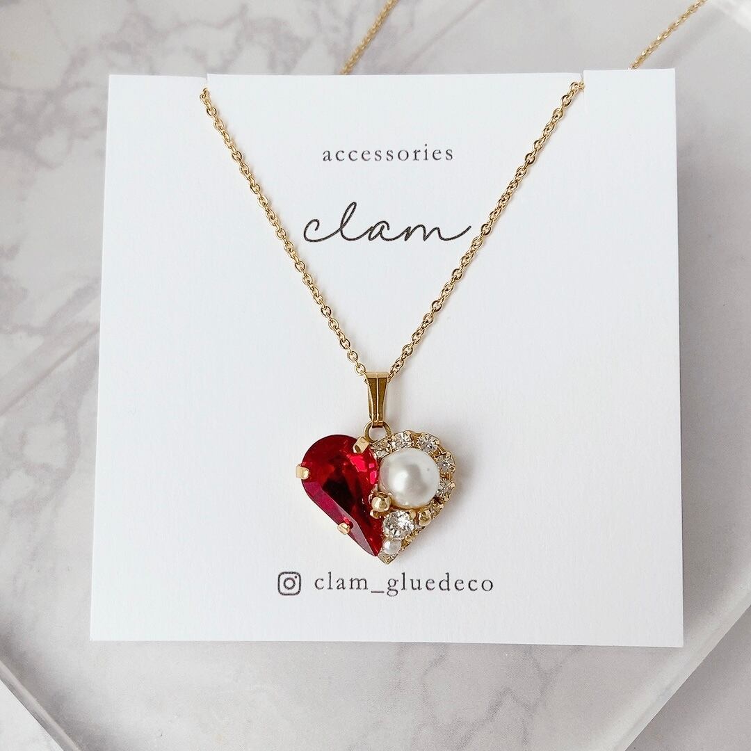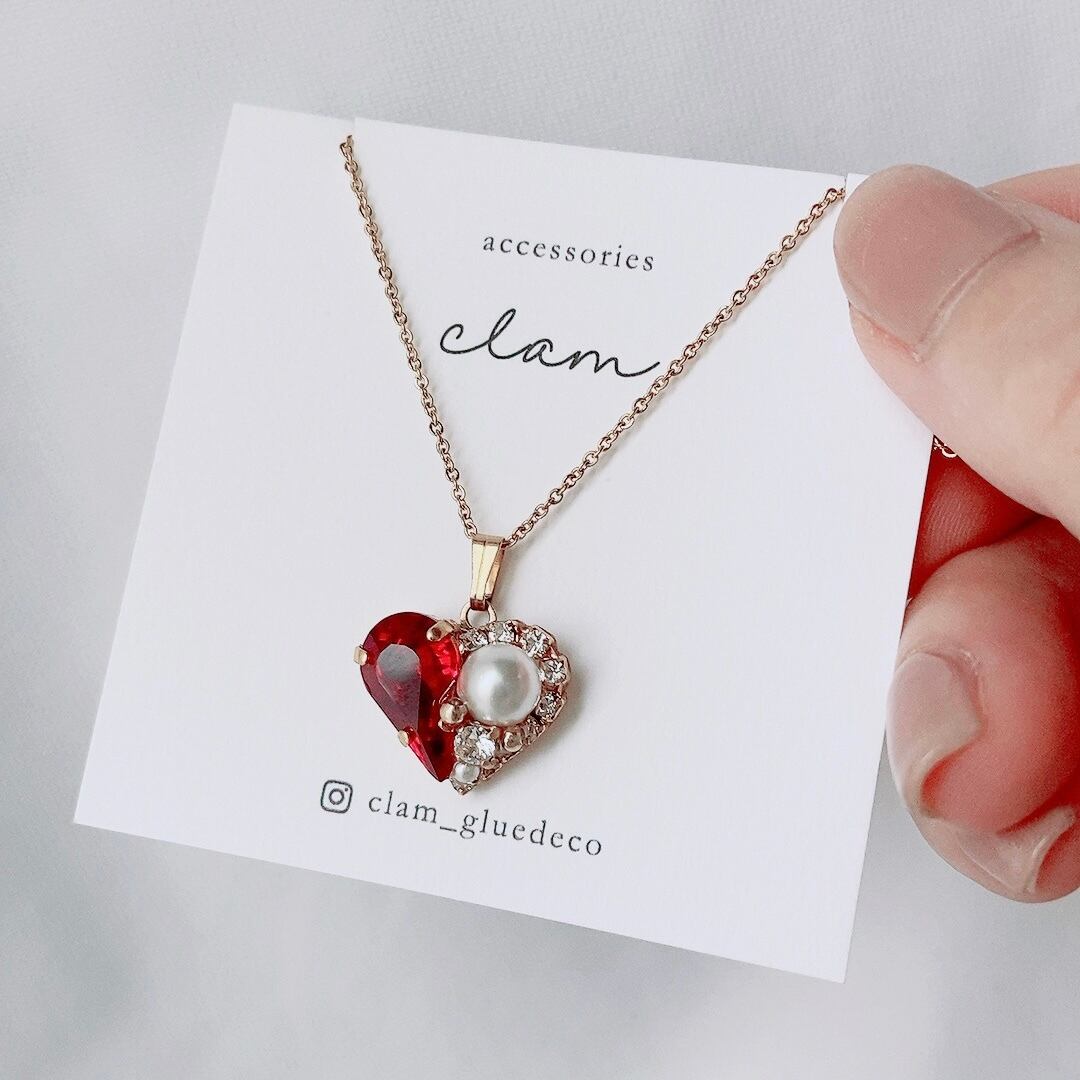 ルビーカラースワロフスキーとクリスタルパールの可愛らしいハートモチーフ❤️