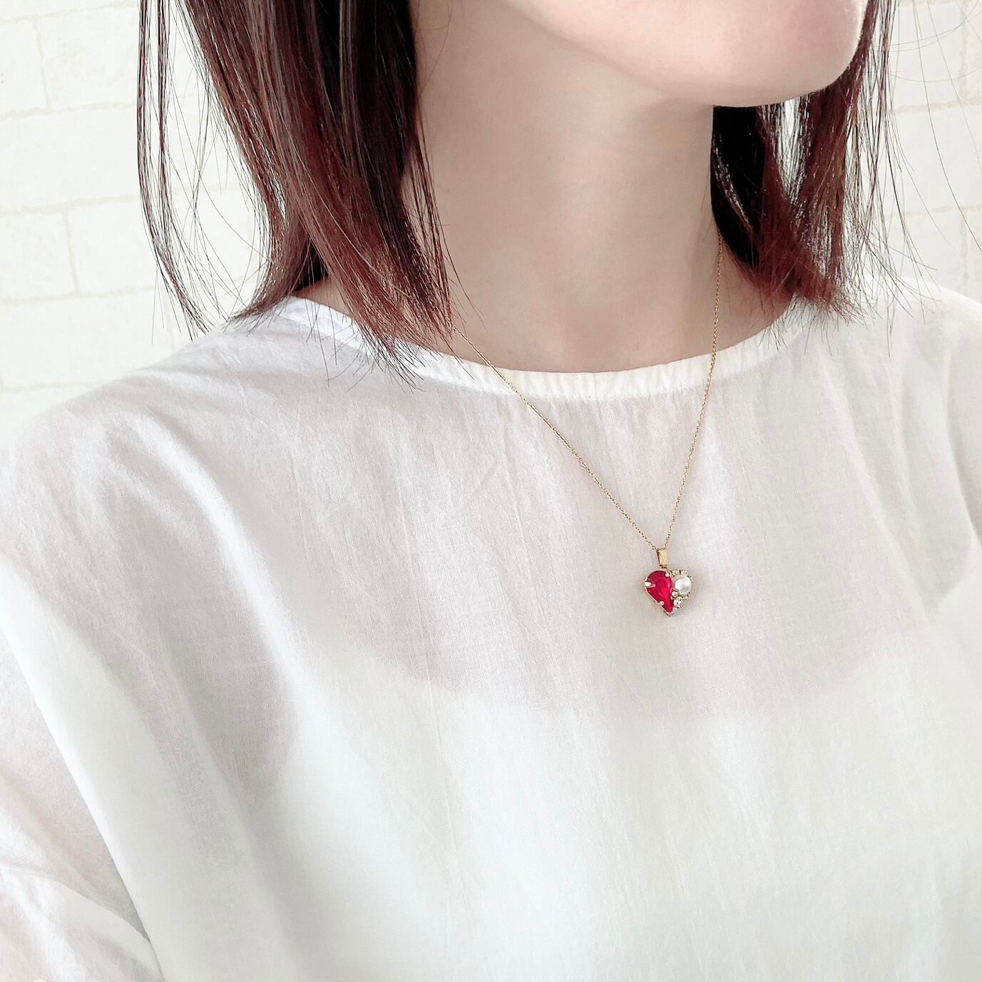 7月の誕生石カラー、ルビーのハートネックレス