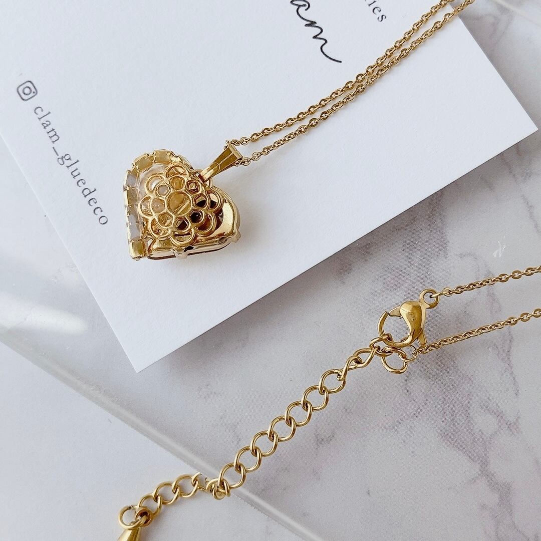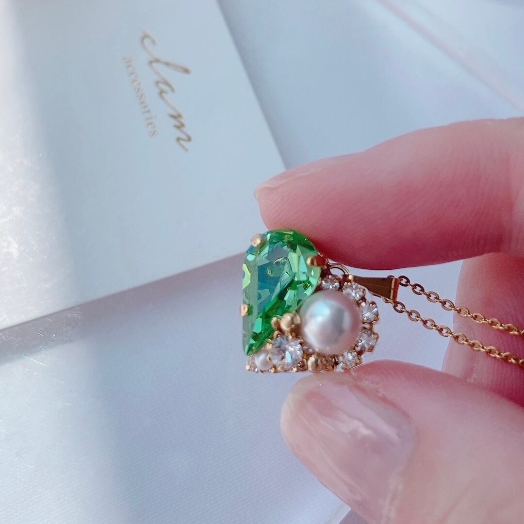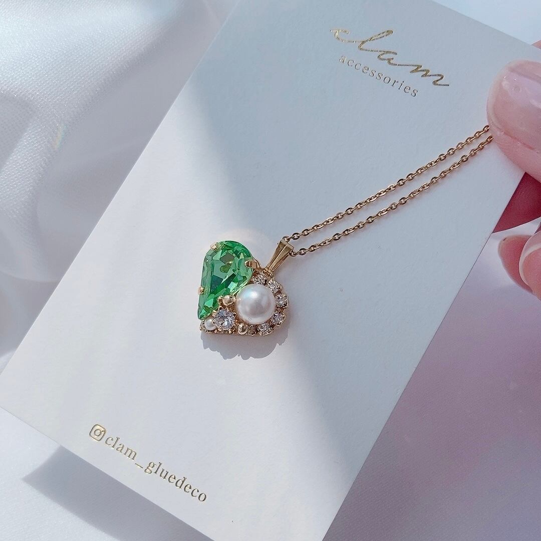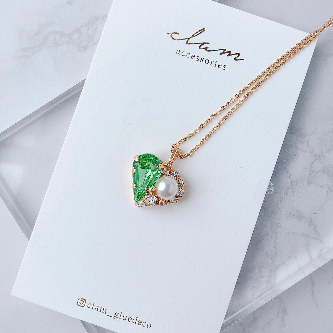 ペリドットカラースワロフスキーとクリスタルパールの可愛らしいハートモチーフ❤️