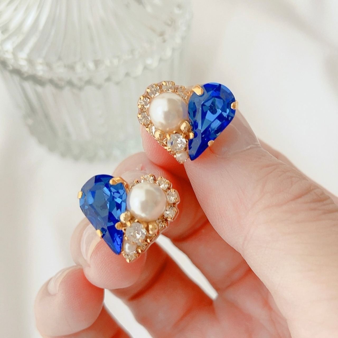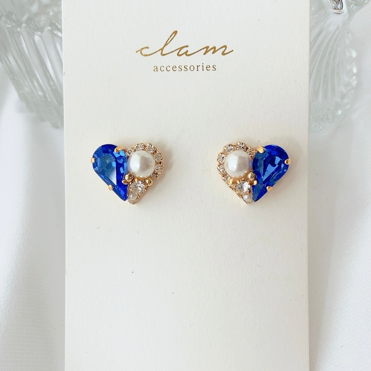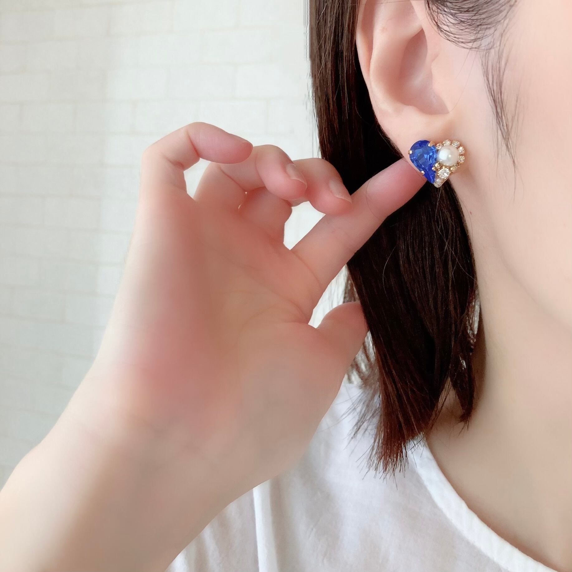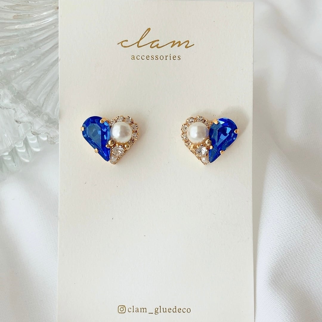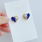 9月の誕生石カラー「サファイア」のハートピアス/イヤリングです。