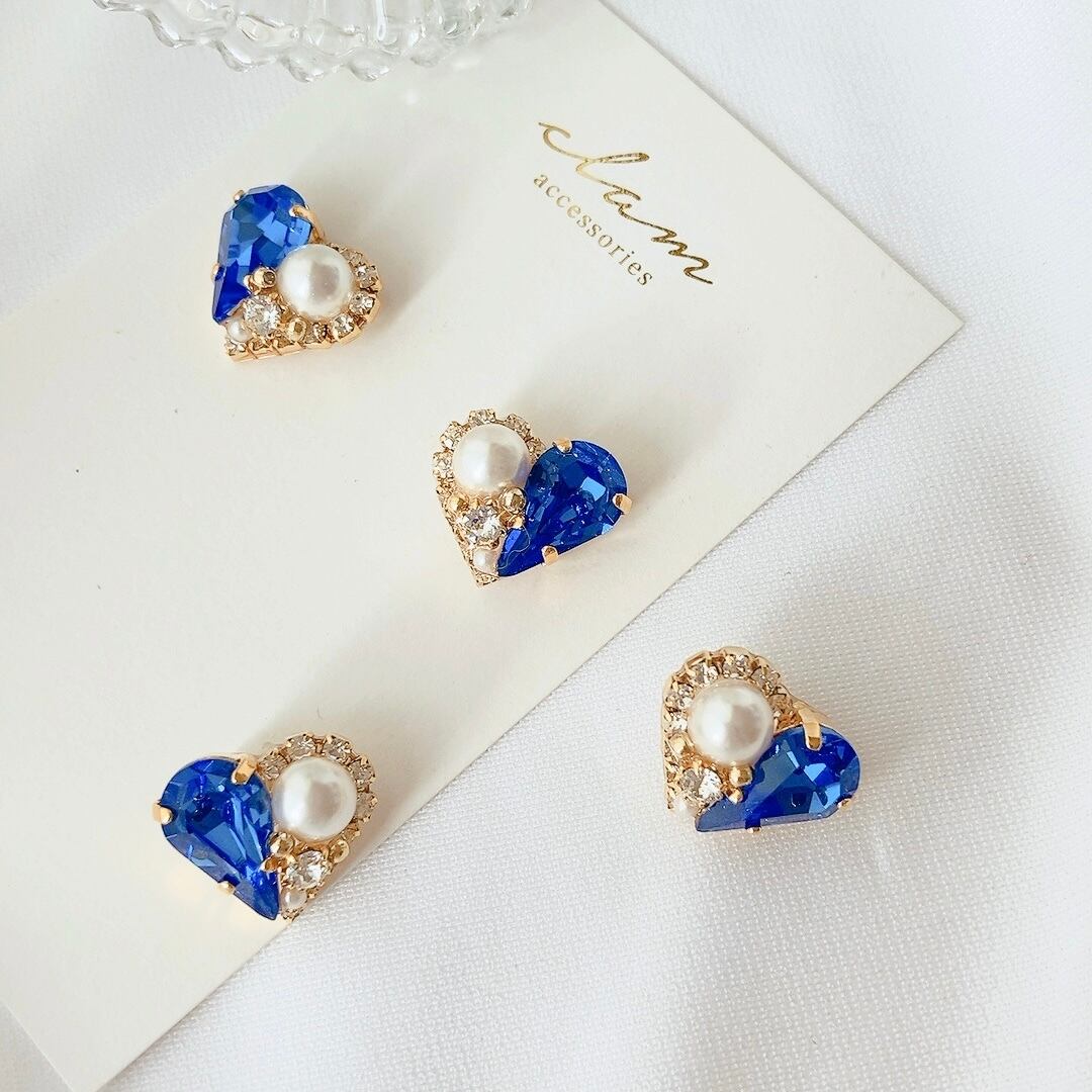 9月誕生石カラー【サファイア】ハートのピアス/イヤリング