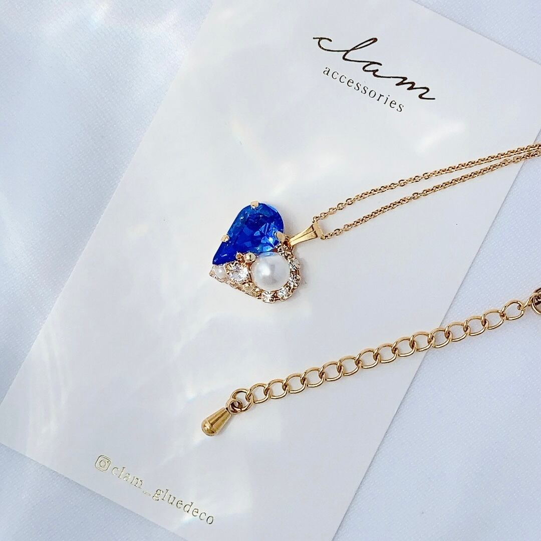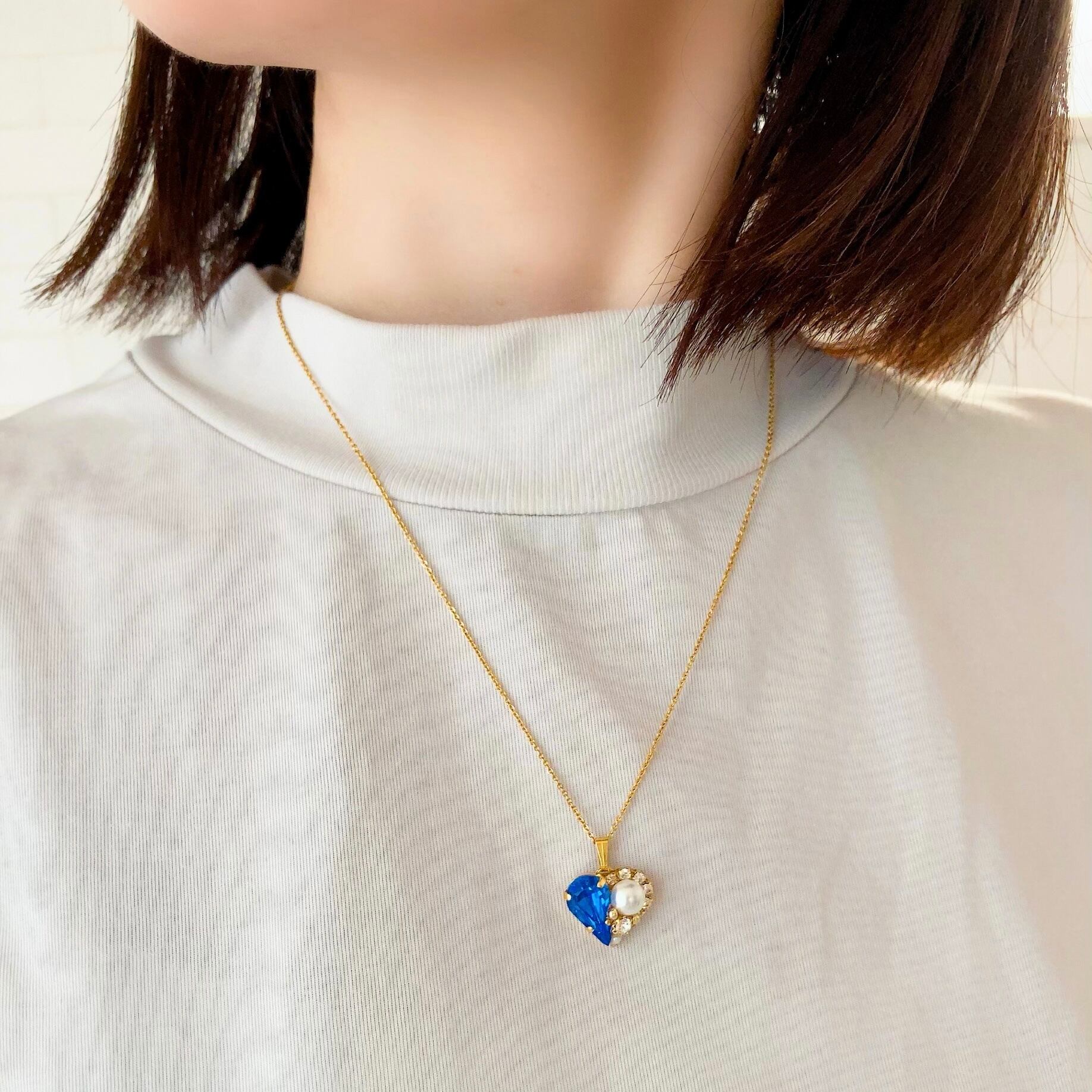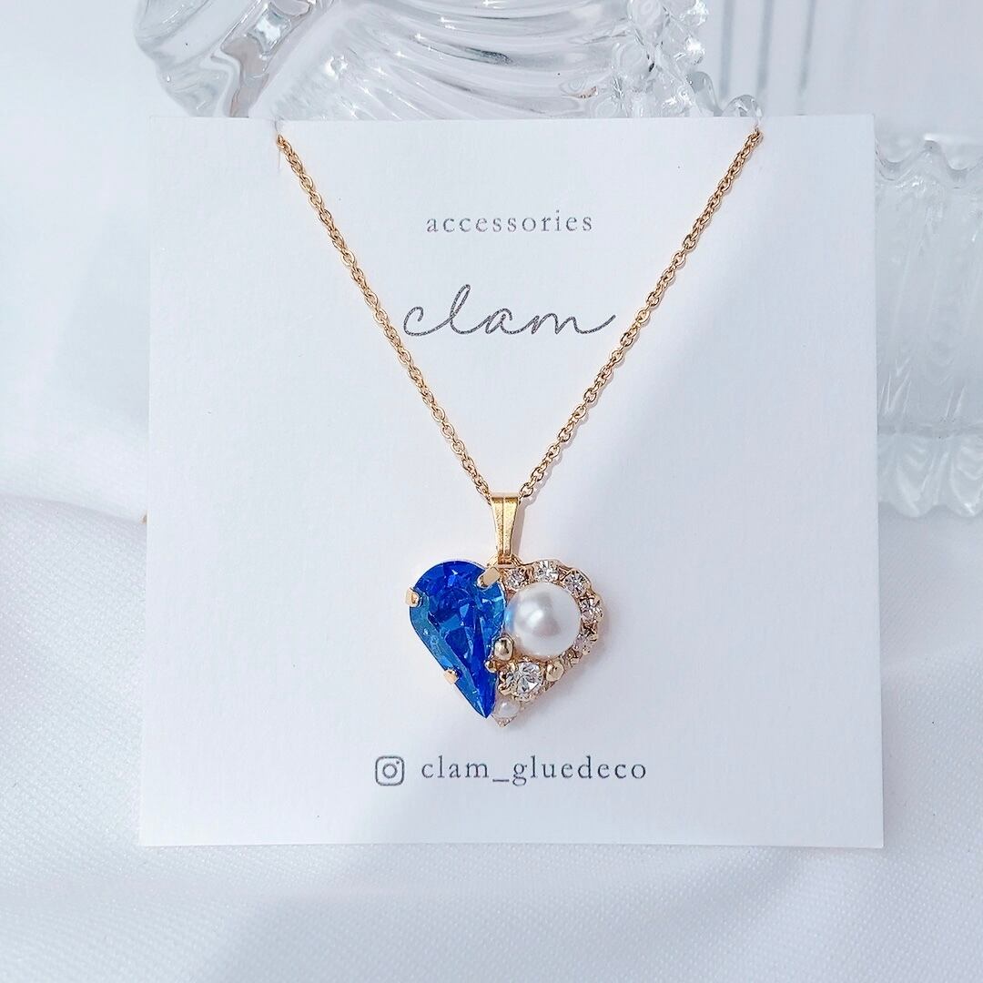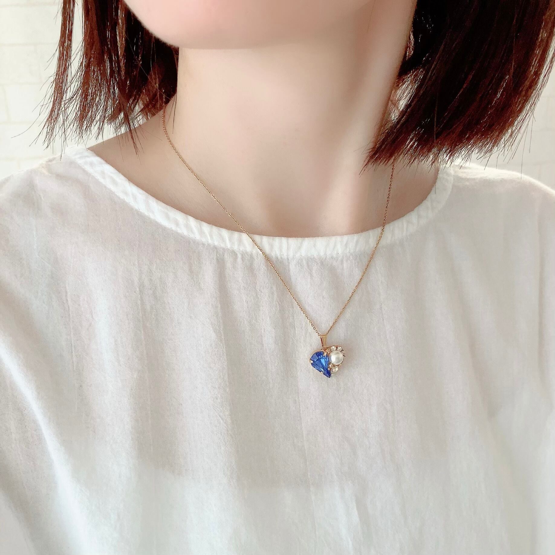 サファイアブルーのスワロフスキーとクリスタルパールの可愛らしいハートモチーフ❤️