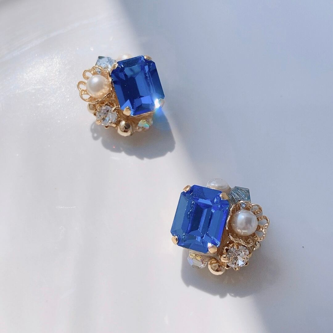 サファイアの美しい輝きを身にまとう、9月誕生石カラーのピアス/イヤリングです