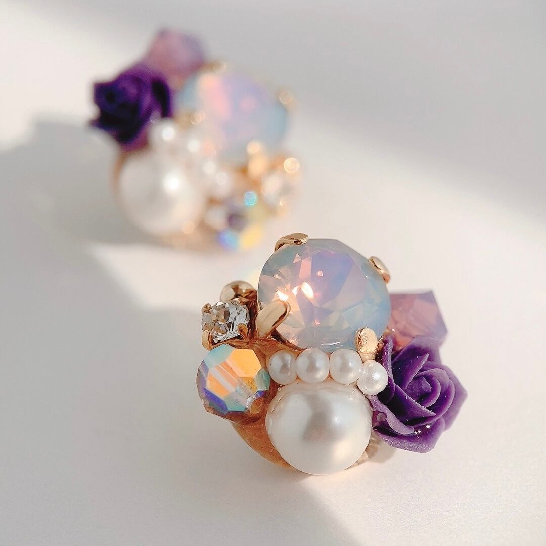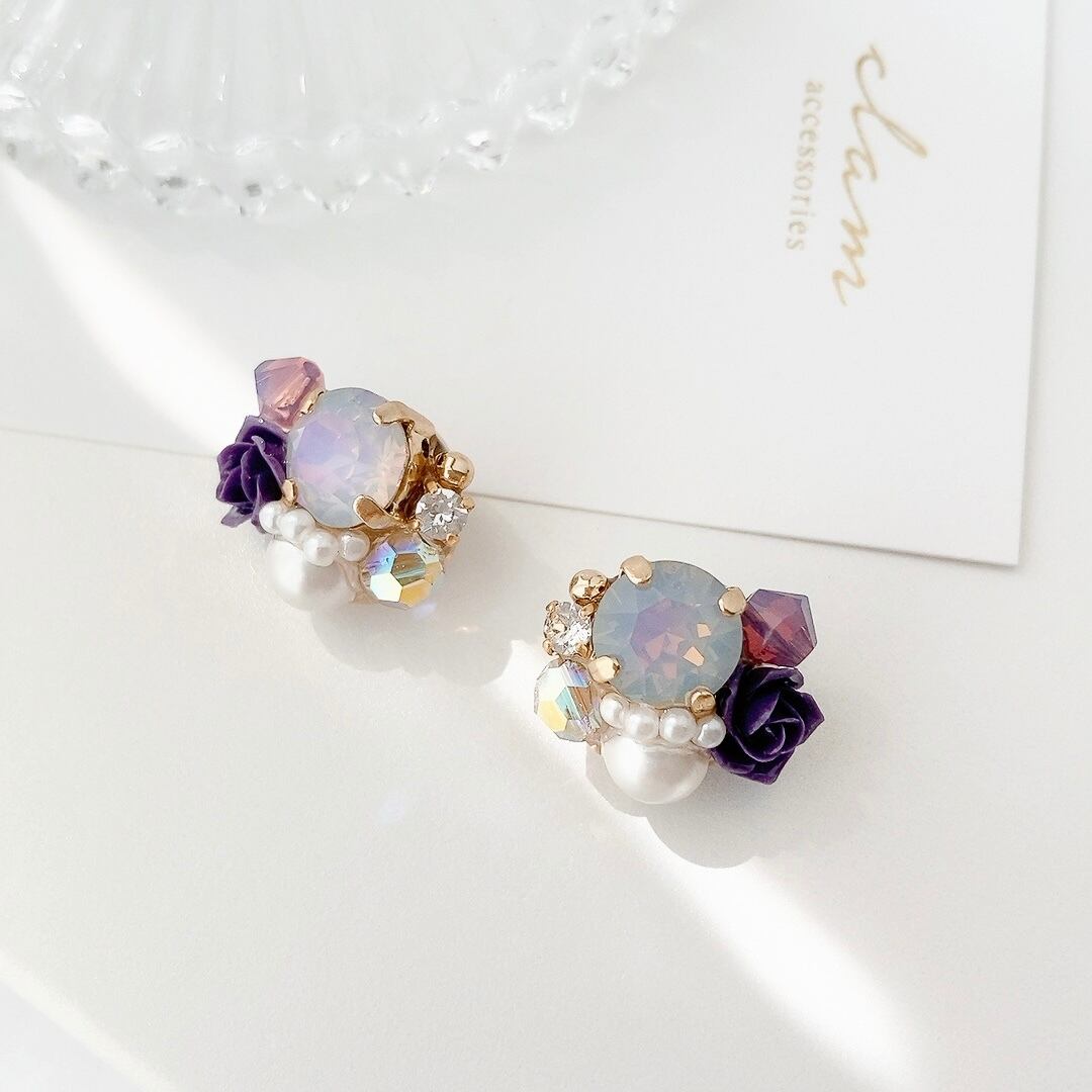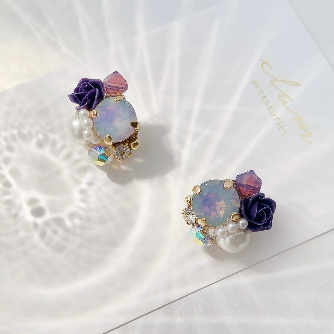 オパールと薔薇のピアス/イヤリング