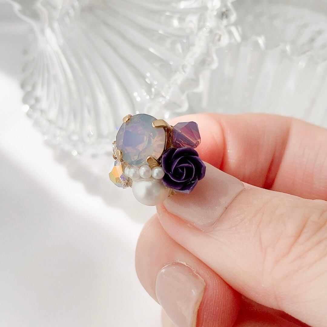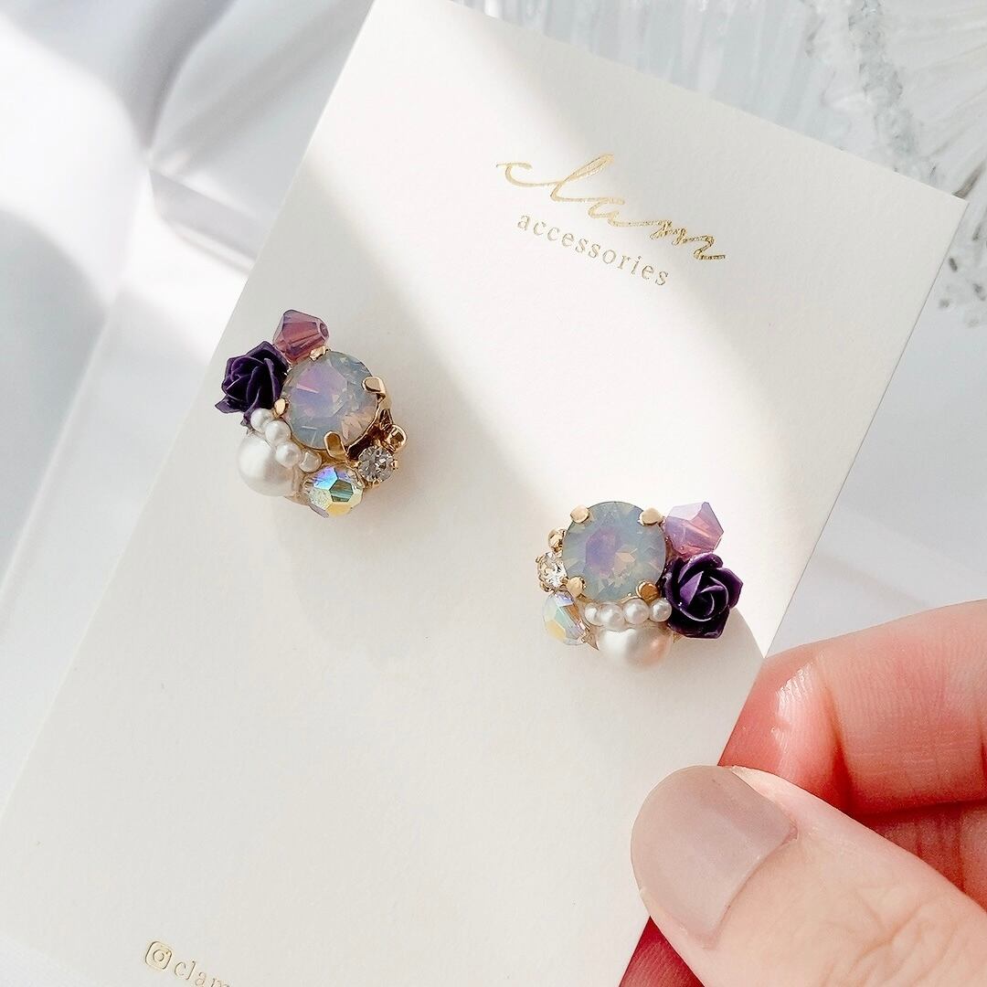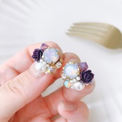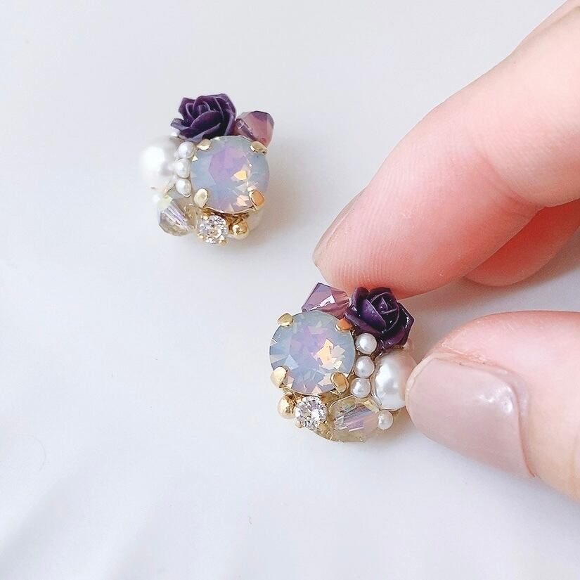 オパールと薔薇のピアス/イヤリング
