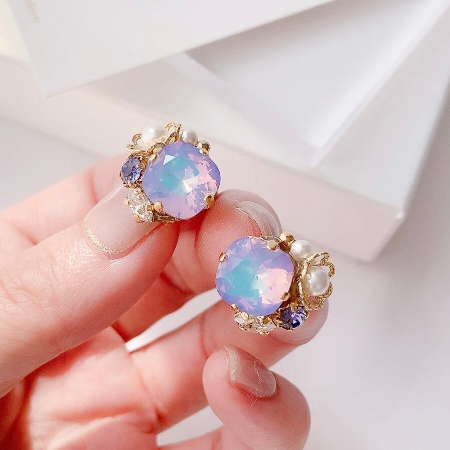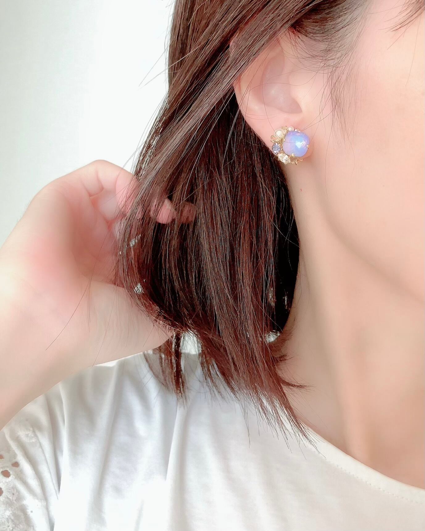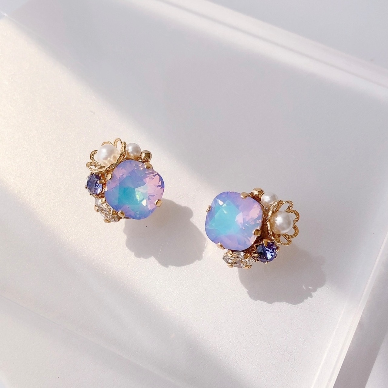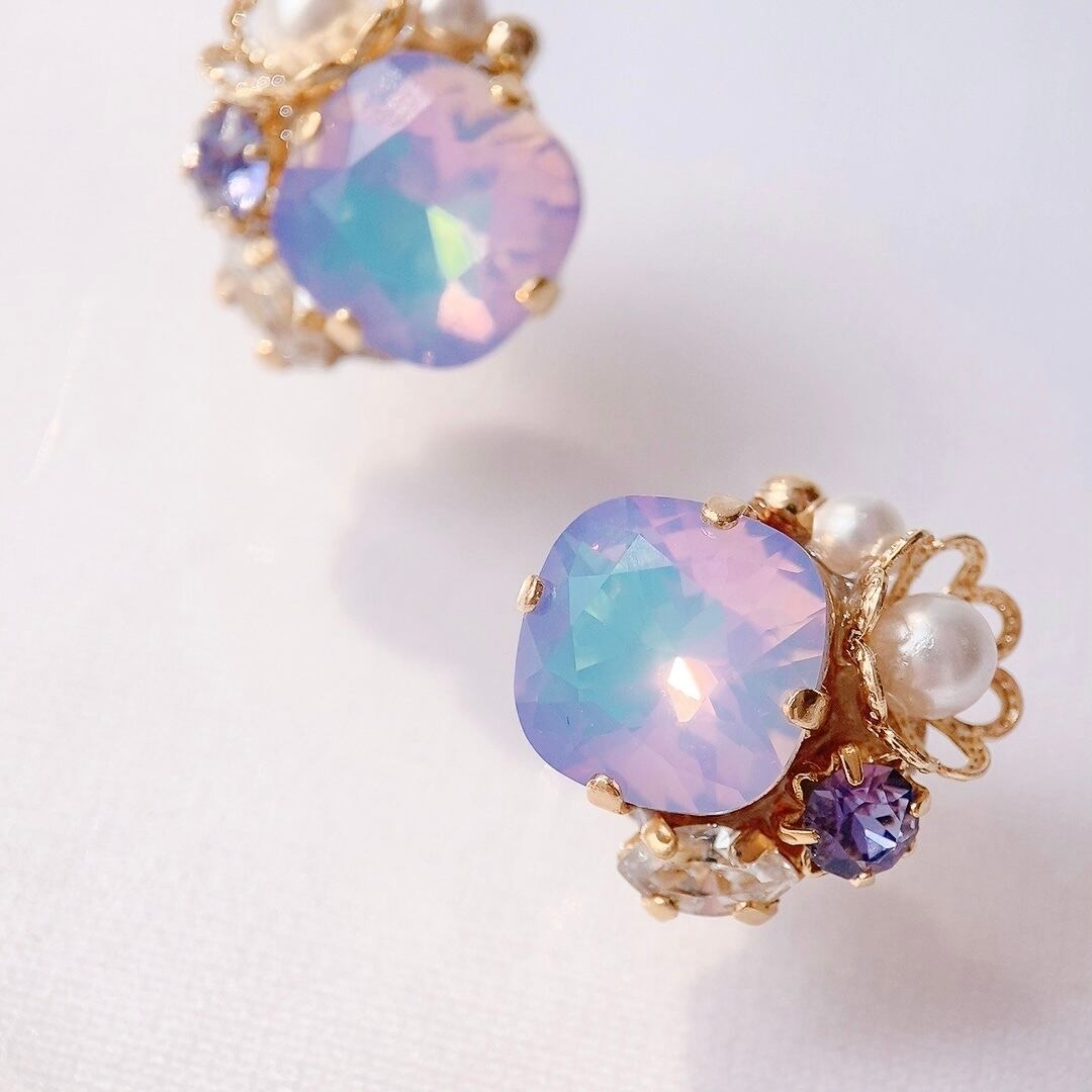 柔らかな光を放つオパールカラーのスワロフスキーが特徴の耳飾り。