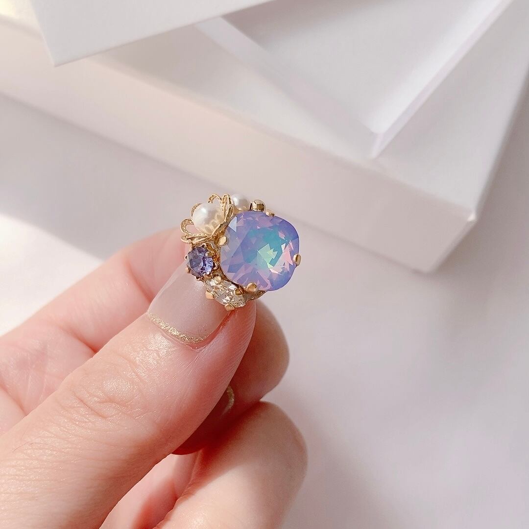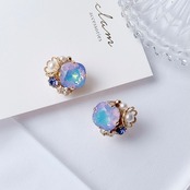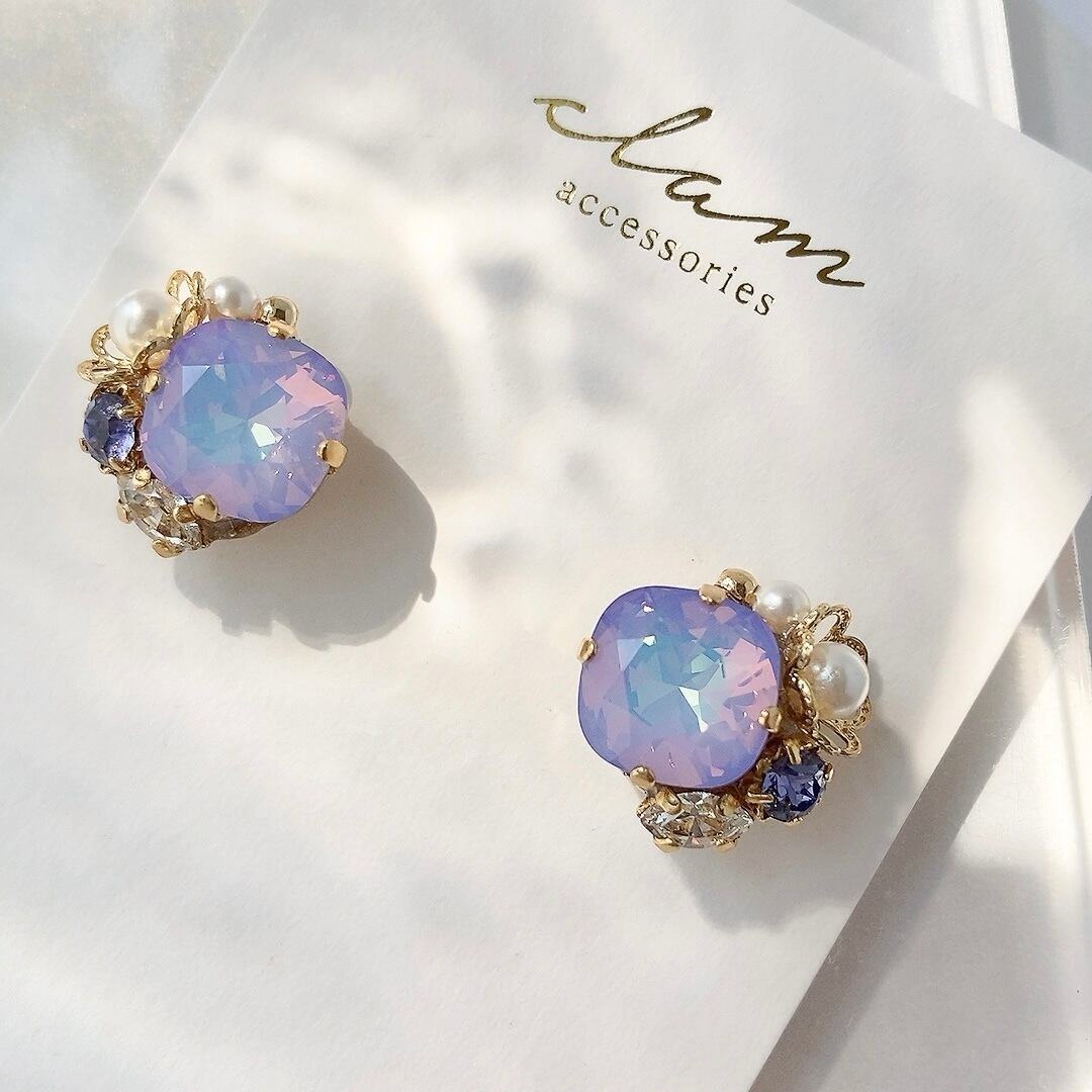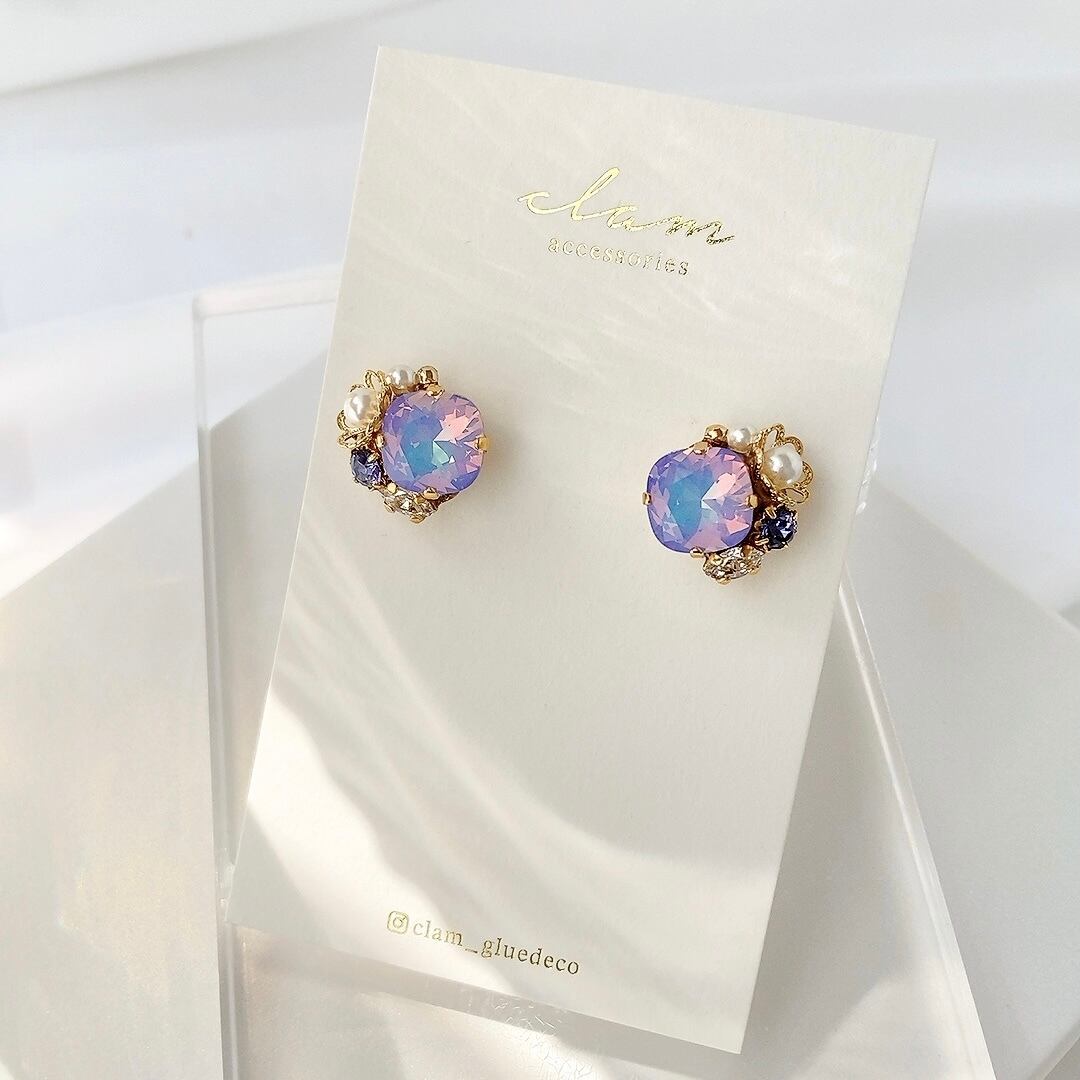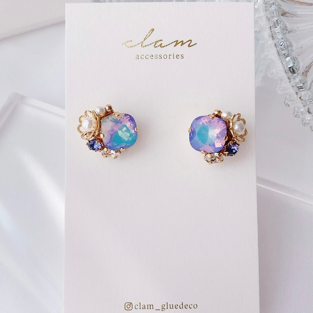 柔らかな光を放つオパールカラーのスワロフスキーが特徴の耳飾り。