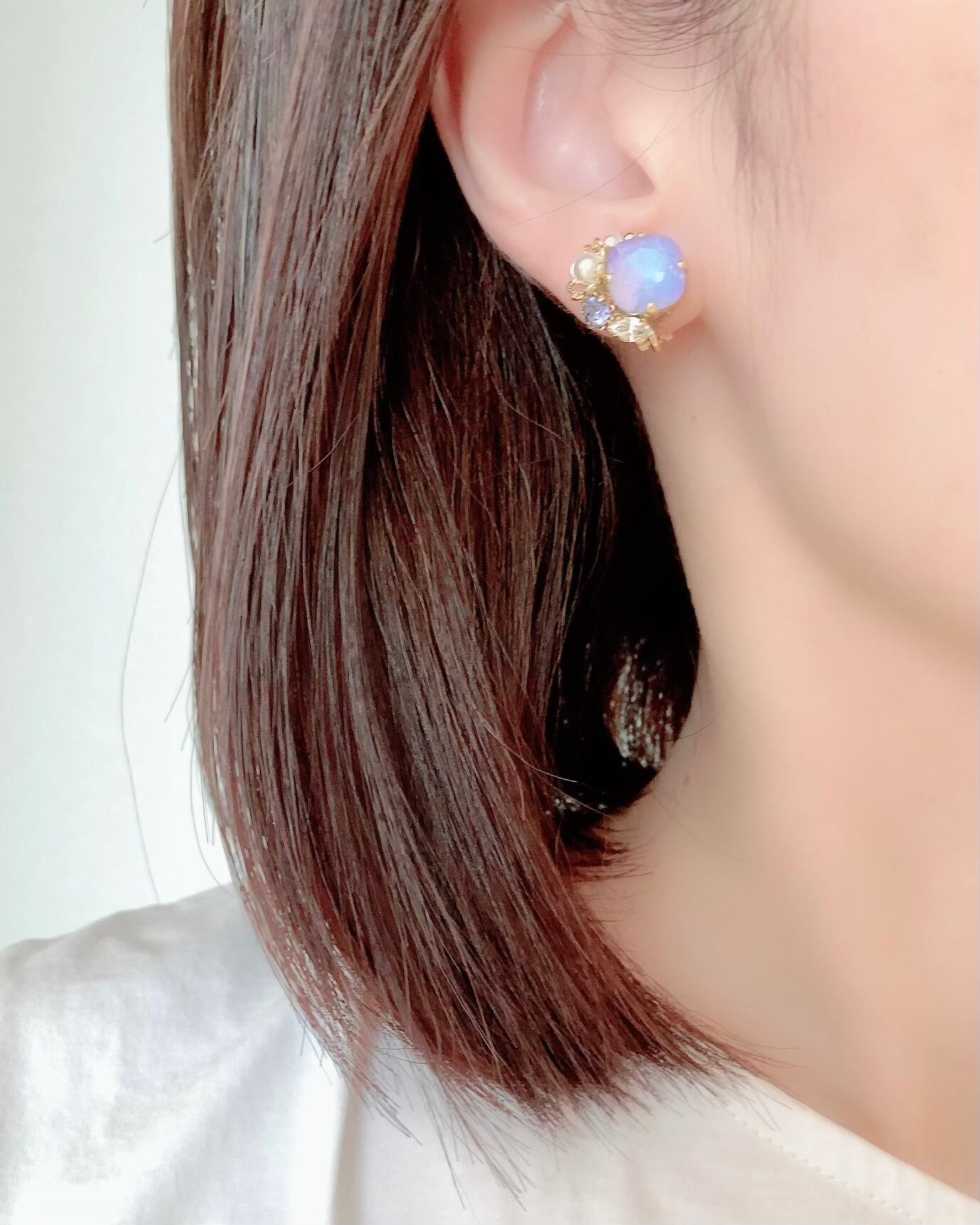 このオパールカラーの耳飾りは、日常の忙しさの中で少しでも心に癒しを届けたい、という思いからデザインしました。