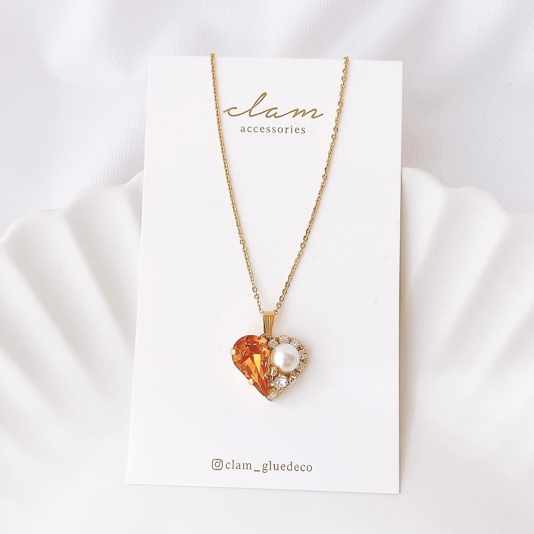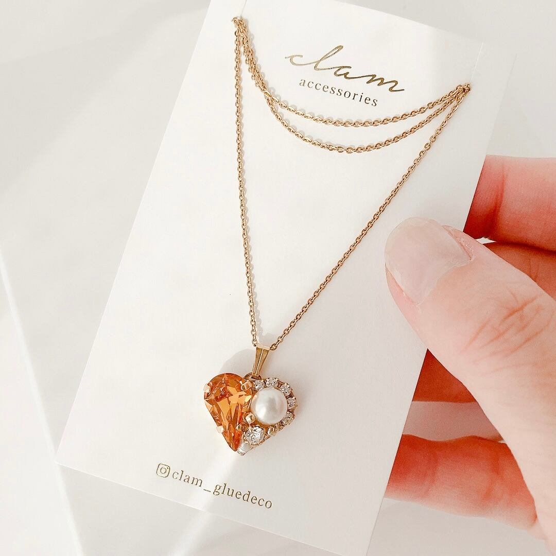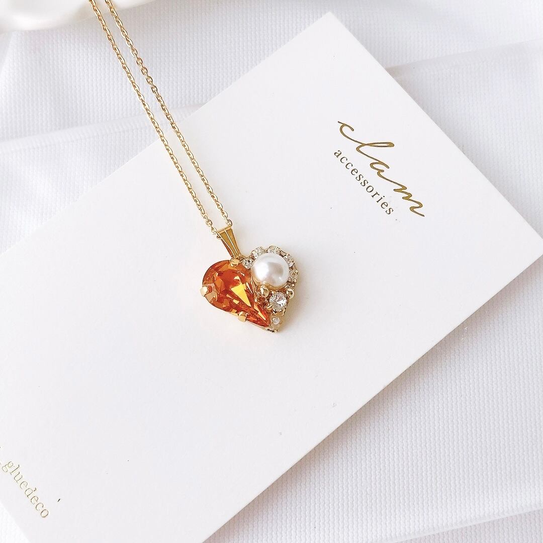 11月誕生石カラー【トパーズ】ハートのネックレス 人気 スワロフスキー 推しカラー