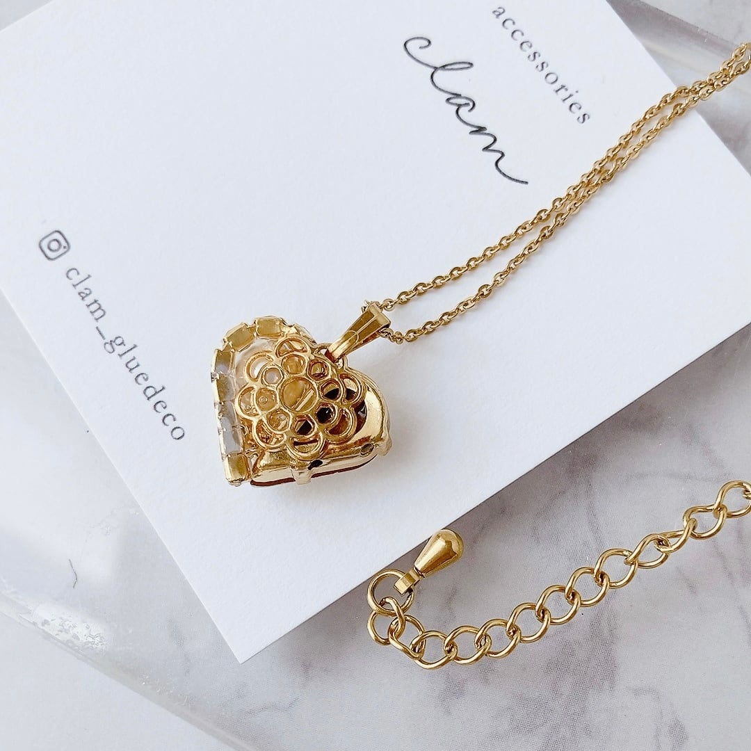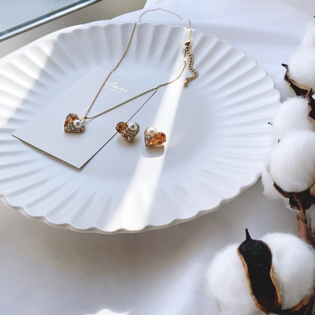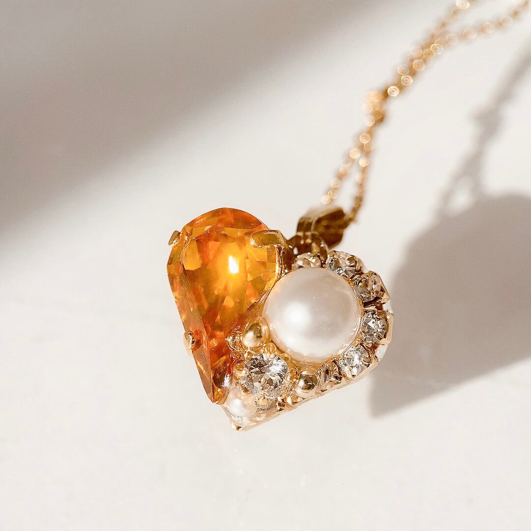 トパーズのスワロフスキーとクリスタルパールの可愛らしいハートモチーフ❤️