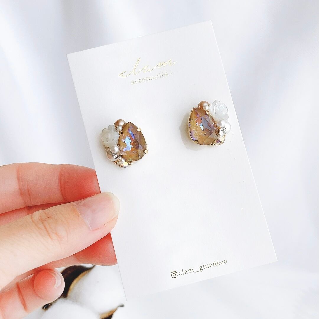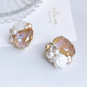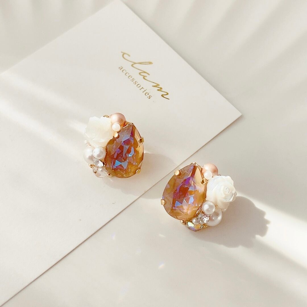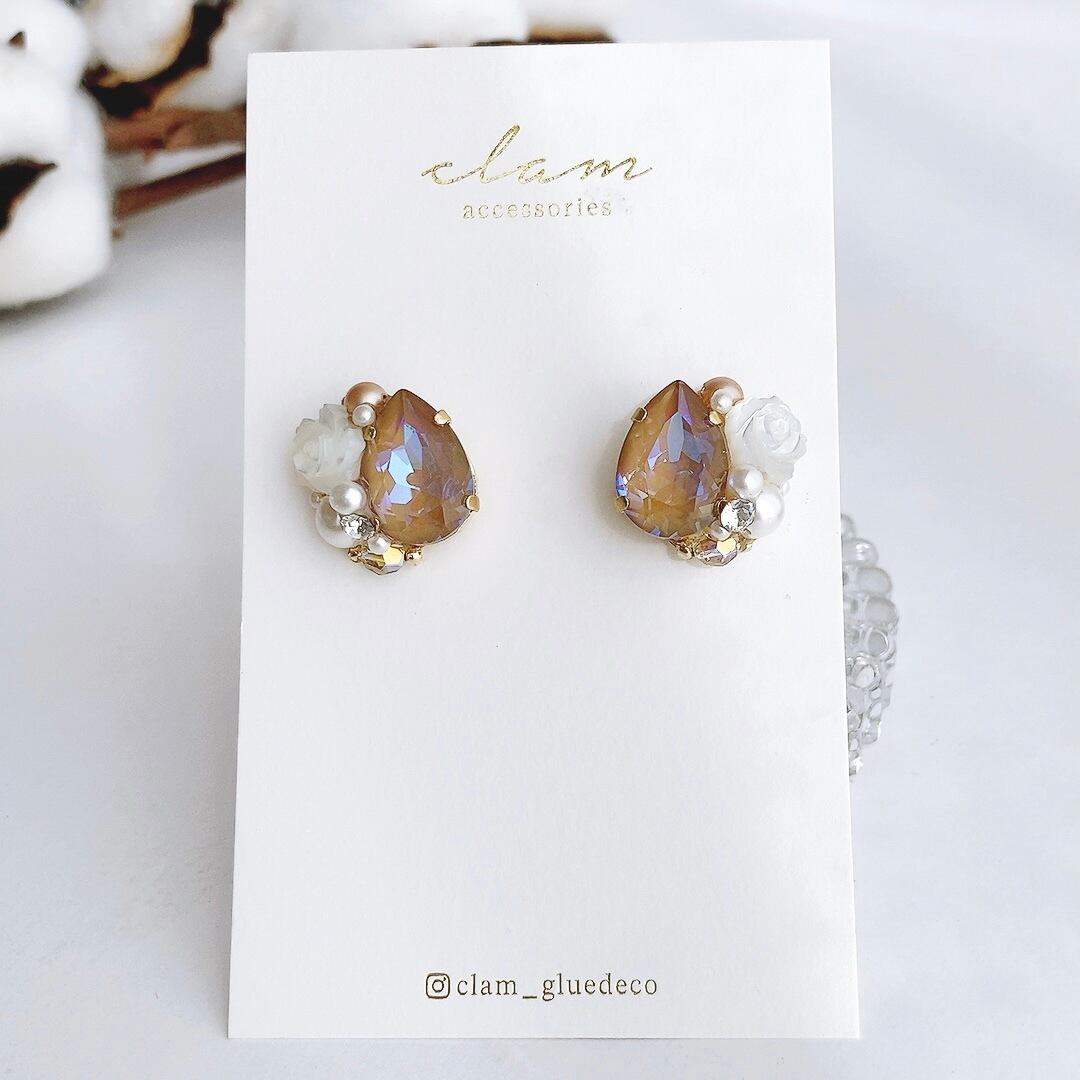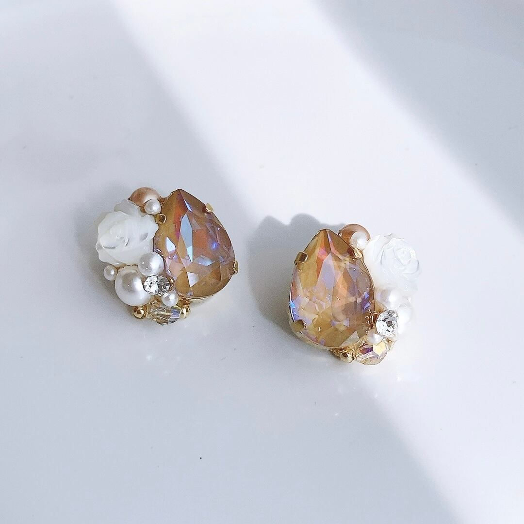 【数量限定】カプチーノ スワロフスキーと薔薇のピアス/イヤリング