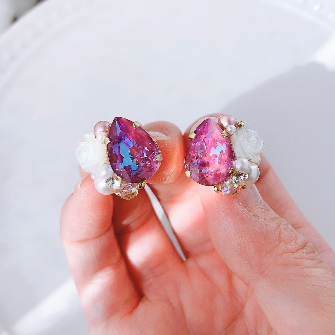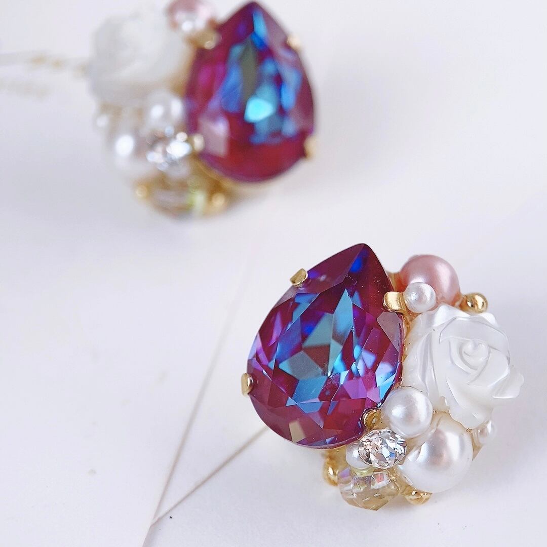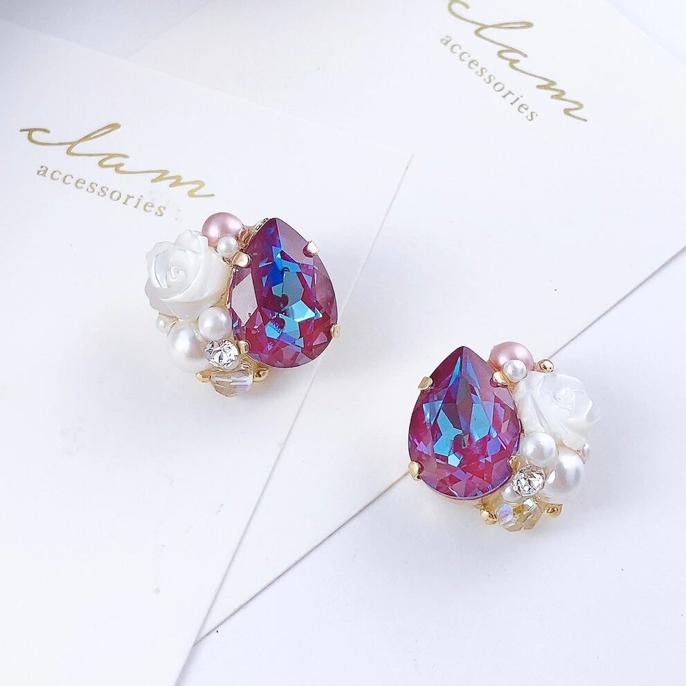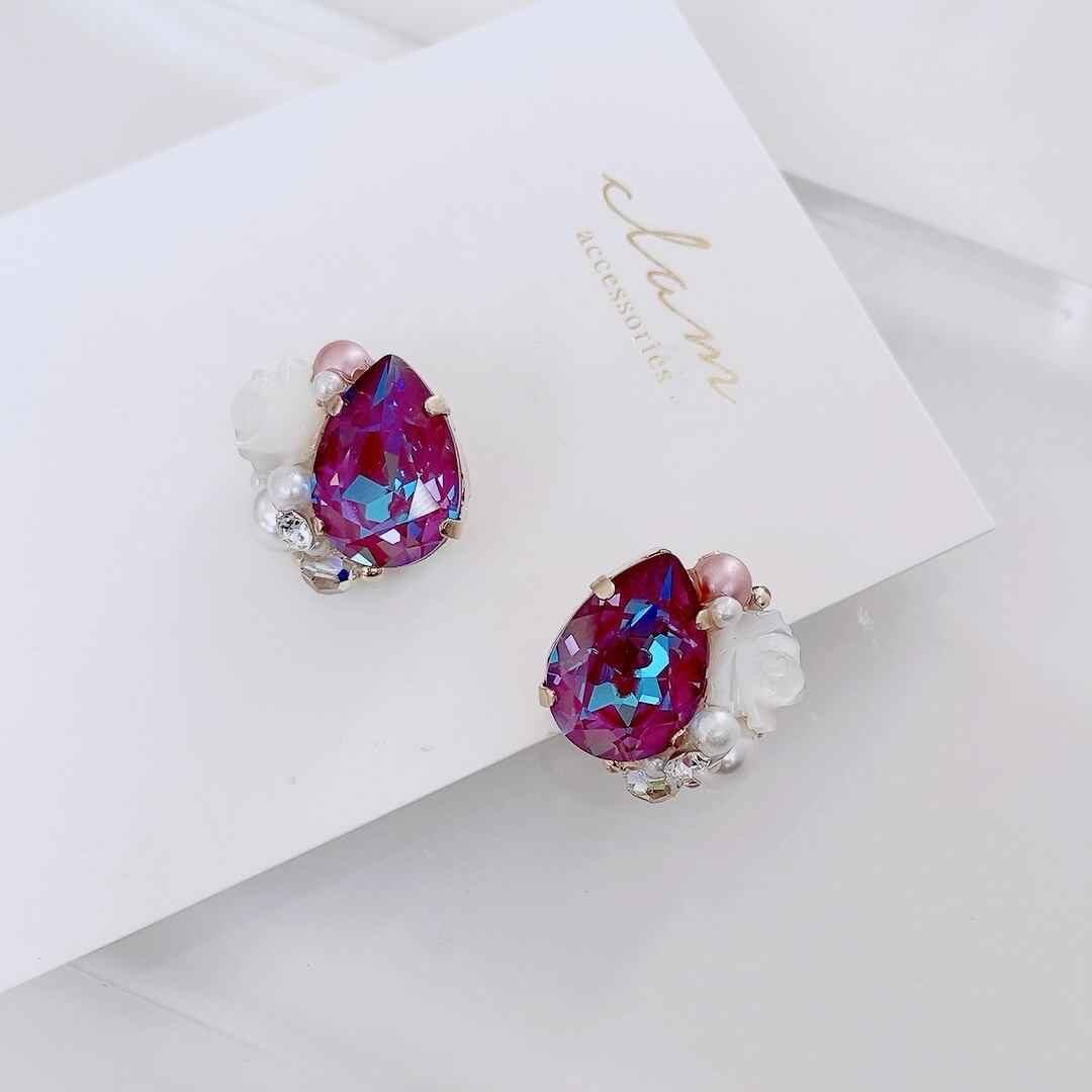 お得なセット【バーガンディ】スワロフスキーと薔薇のネックレス&ピアス/イヤリングはこちら↓