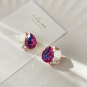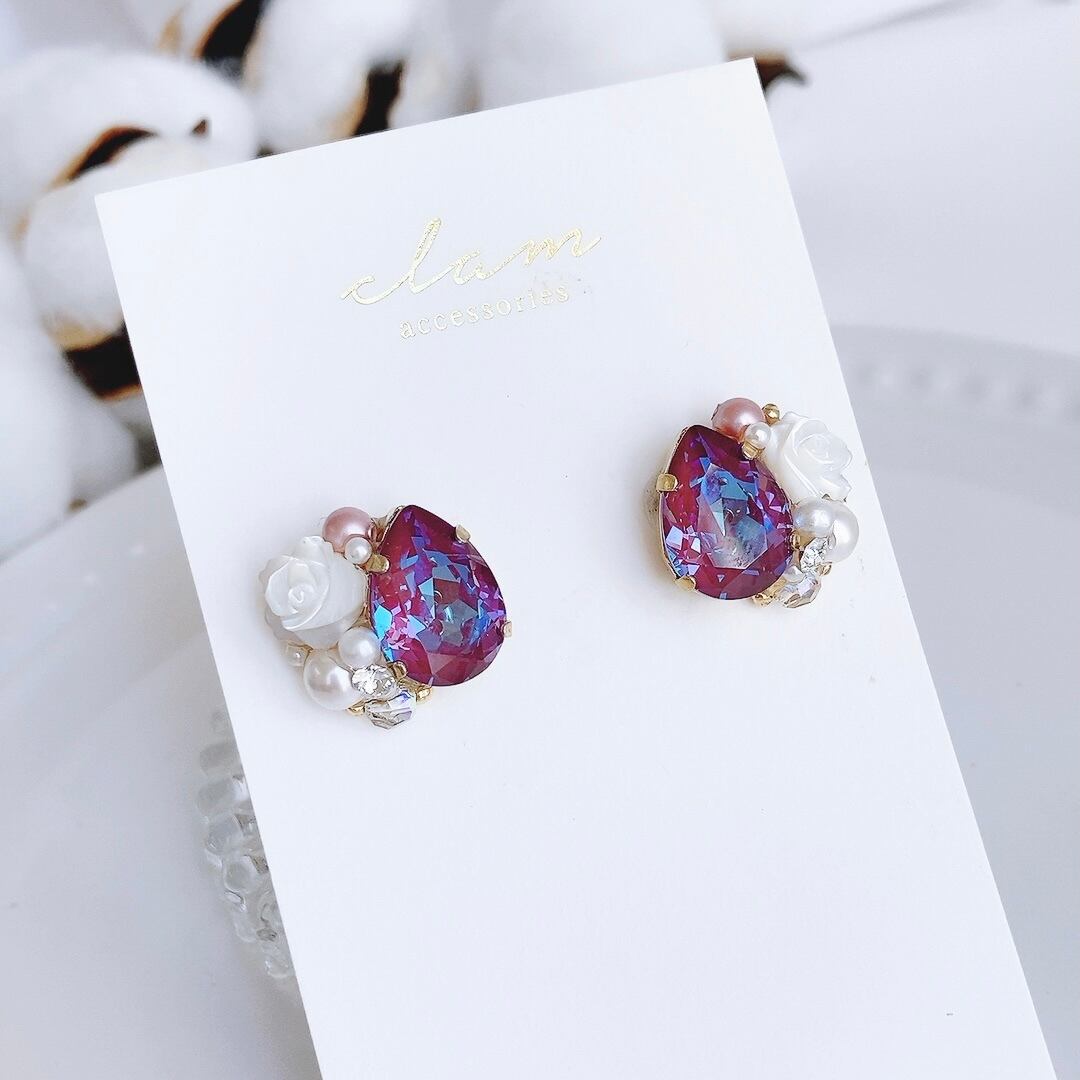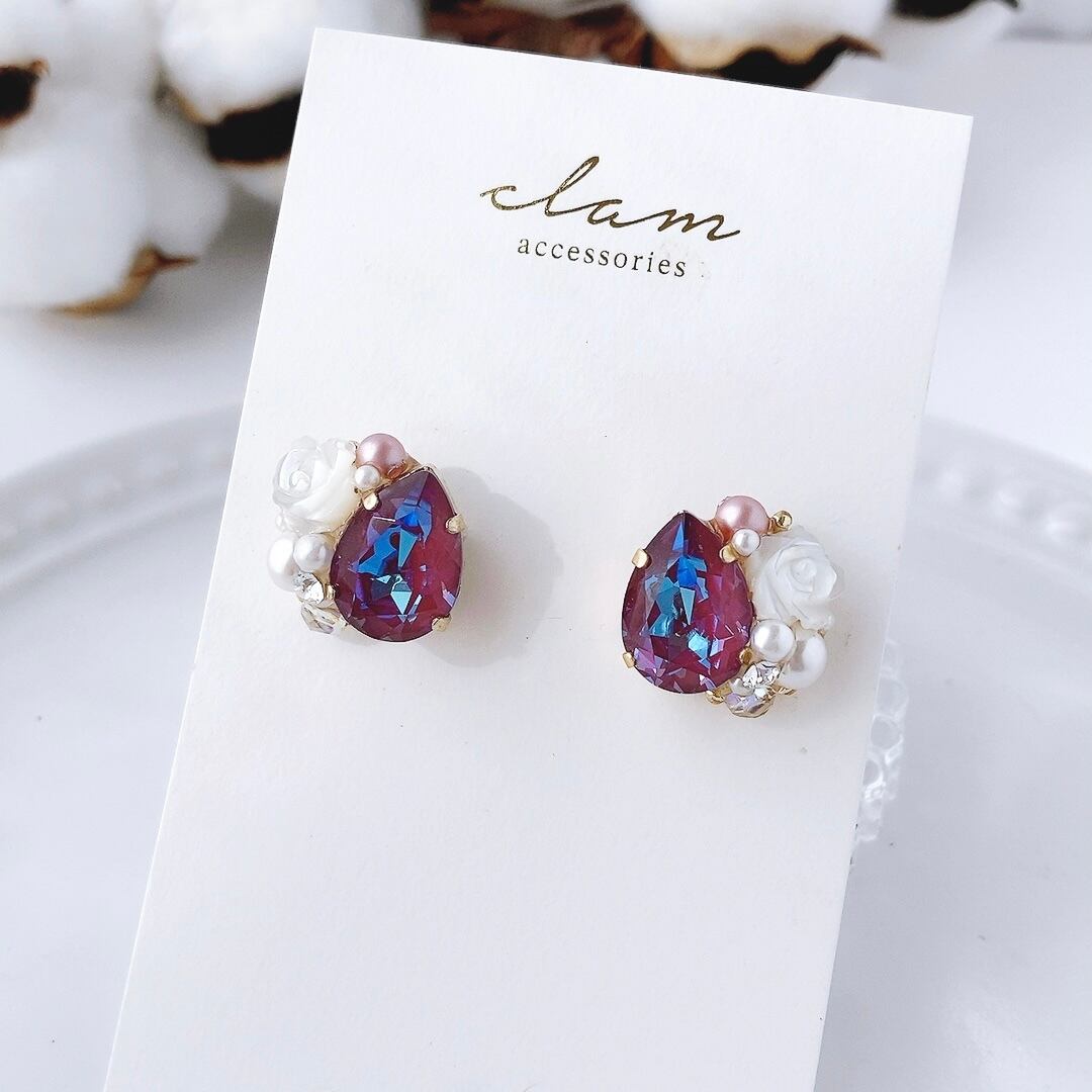 【数量限定】バーガンディ スワロフスキーと薔薇のピアス/イヤリング