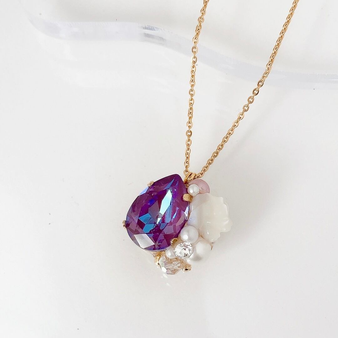 【バーガンディ】スワロフスキーと薔薇のネックレス