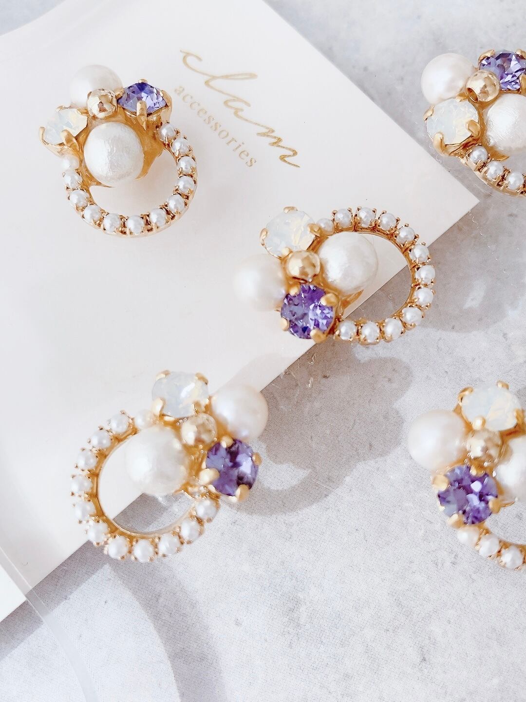 青みがかった紫が印象的なタンザナイトカラーのスワロフスキーと、