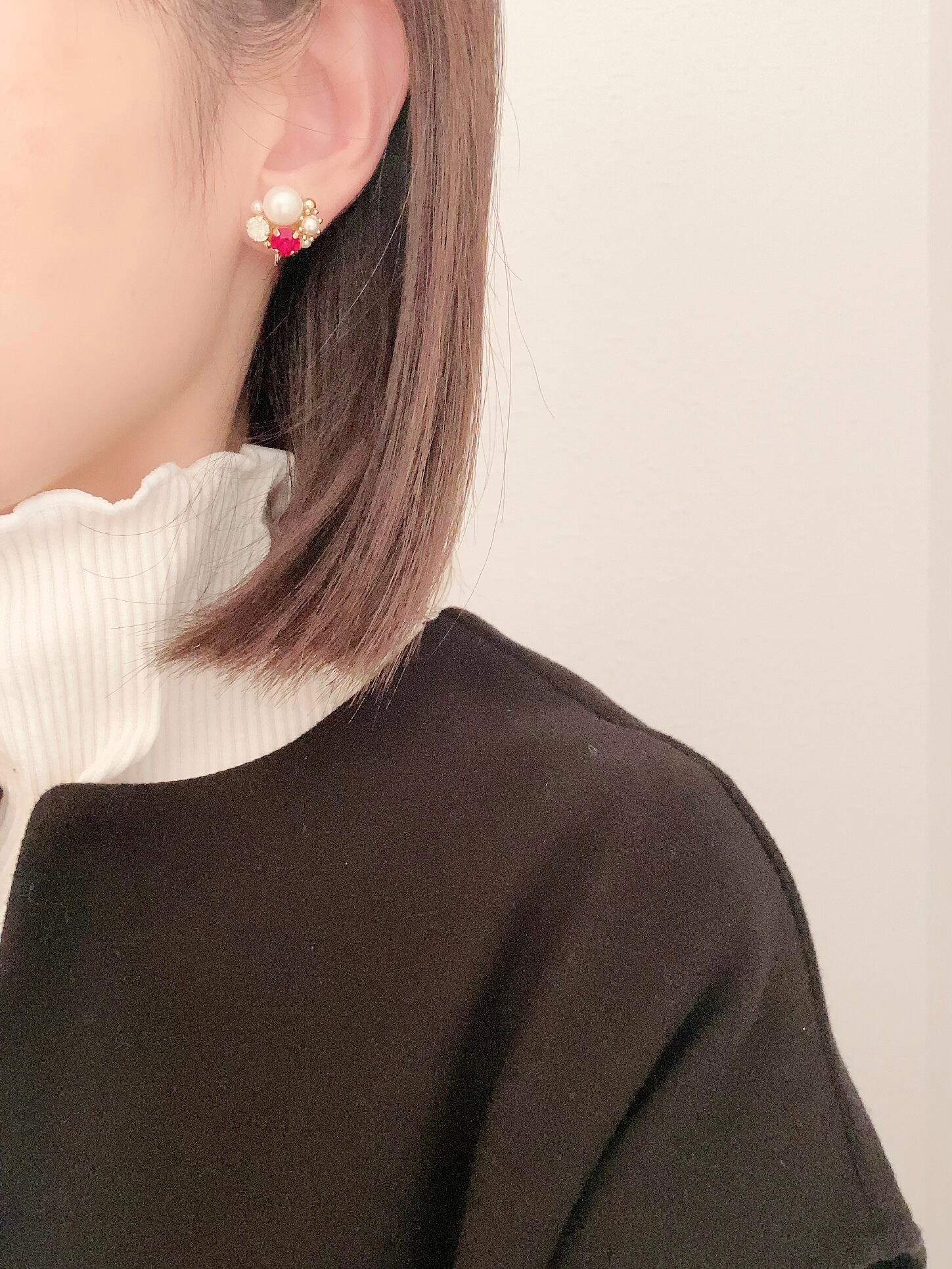 レッドのスワロフスキーが冬のコーデのアクセントになり、