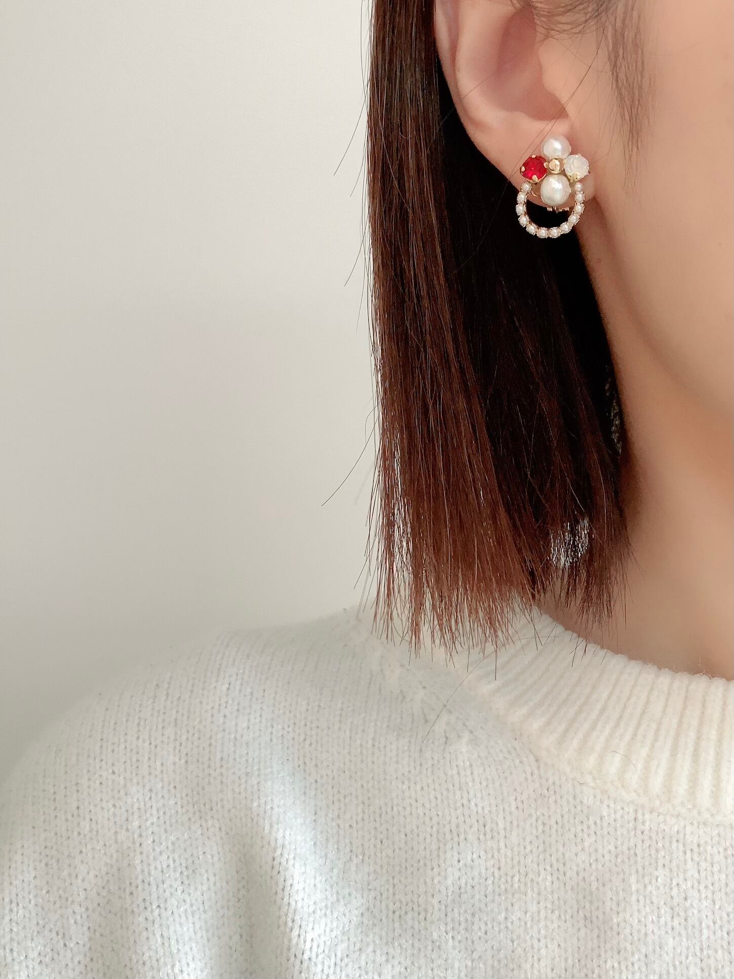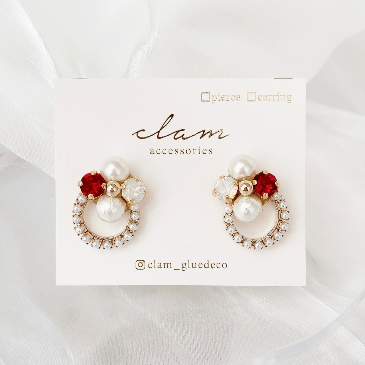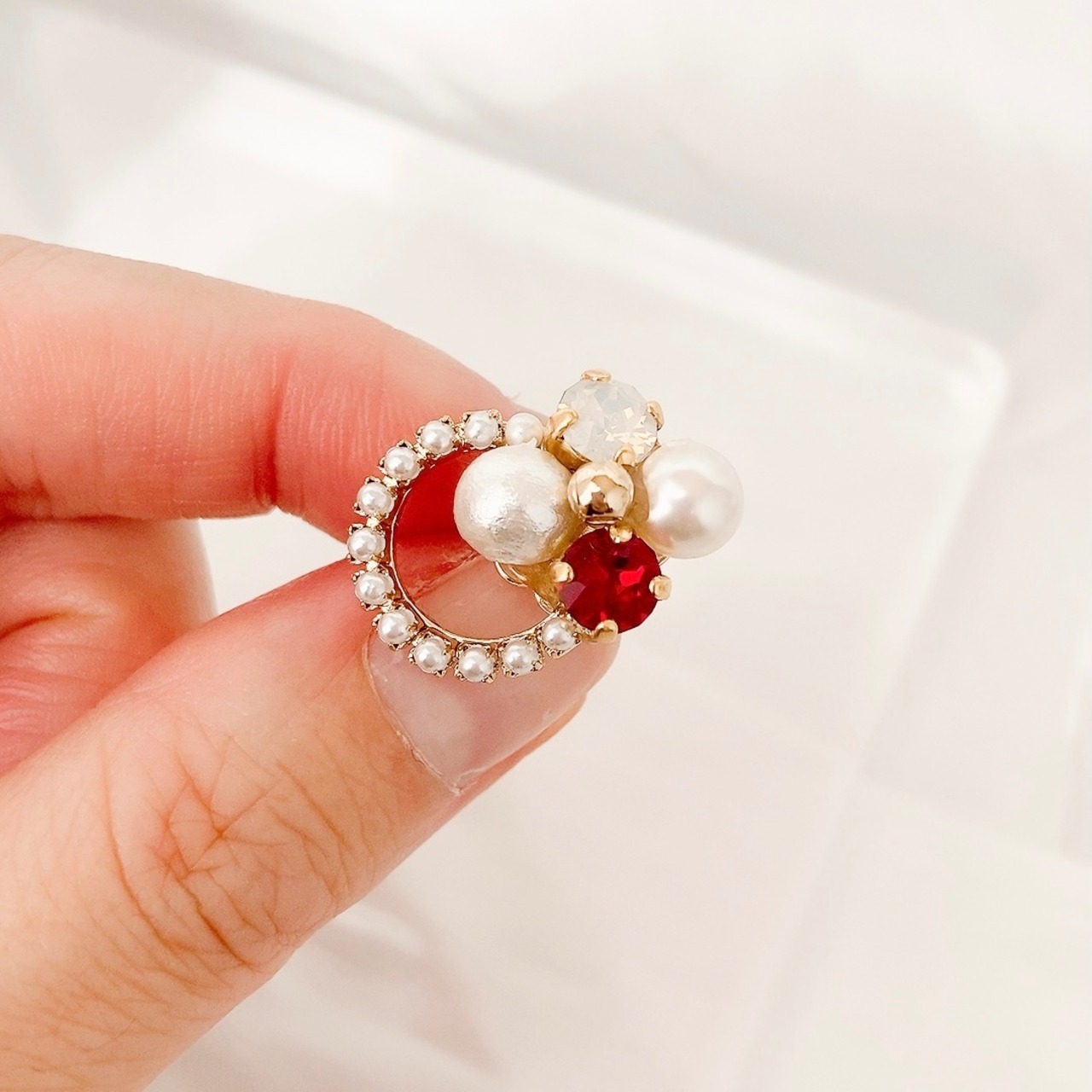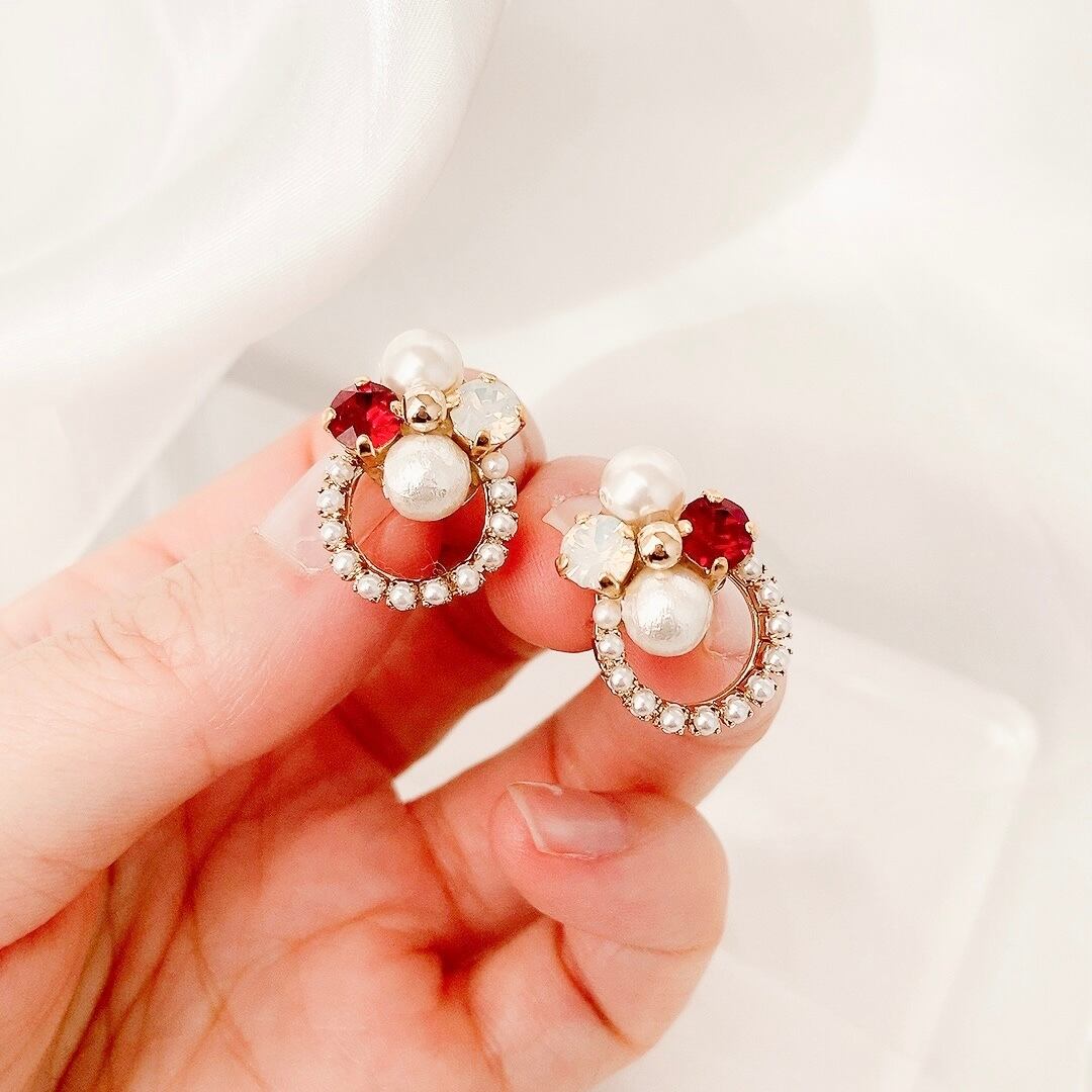 ガーネットカラーと上品なパールが相性抜群のピアス/イヤリングです
