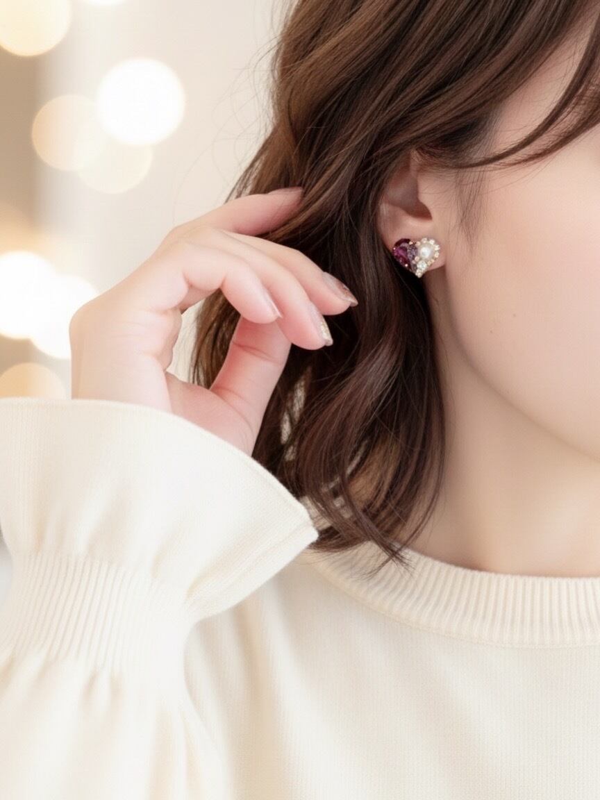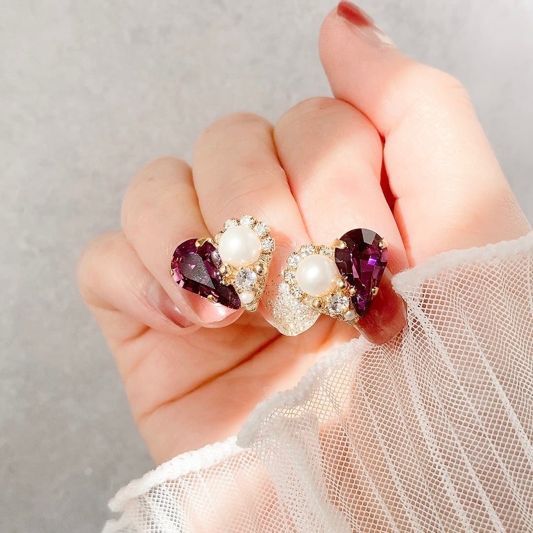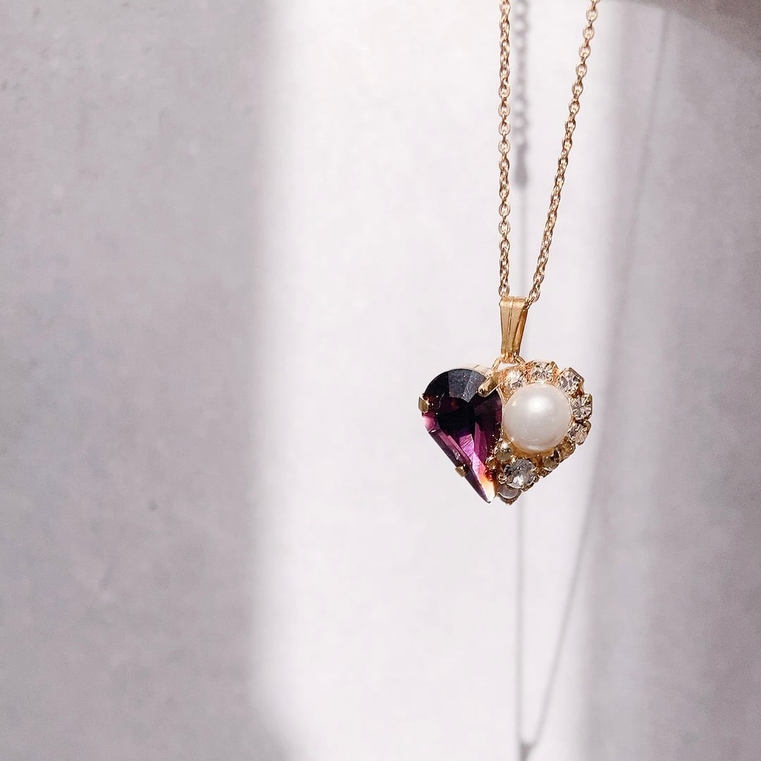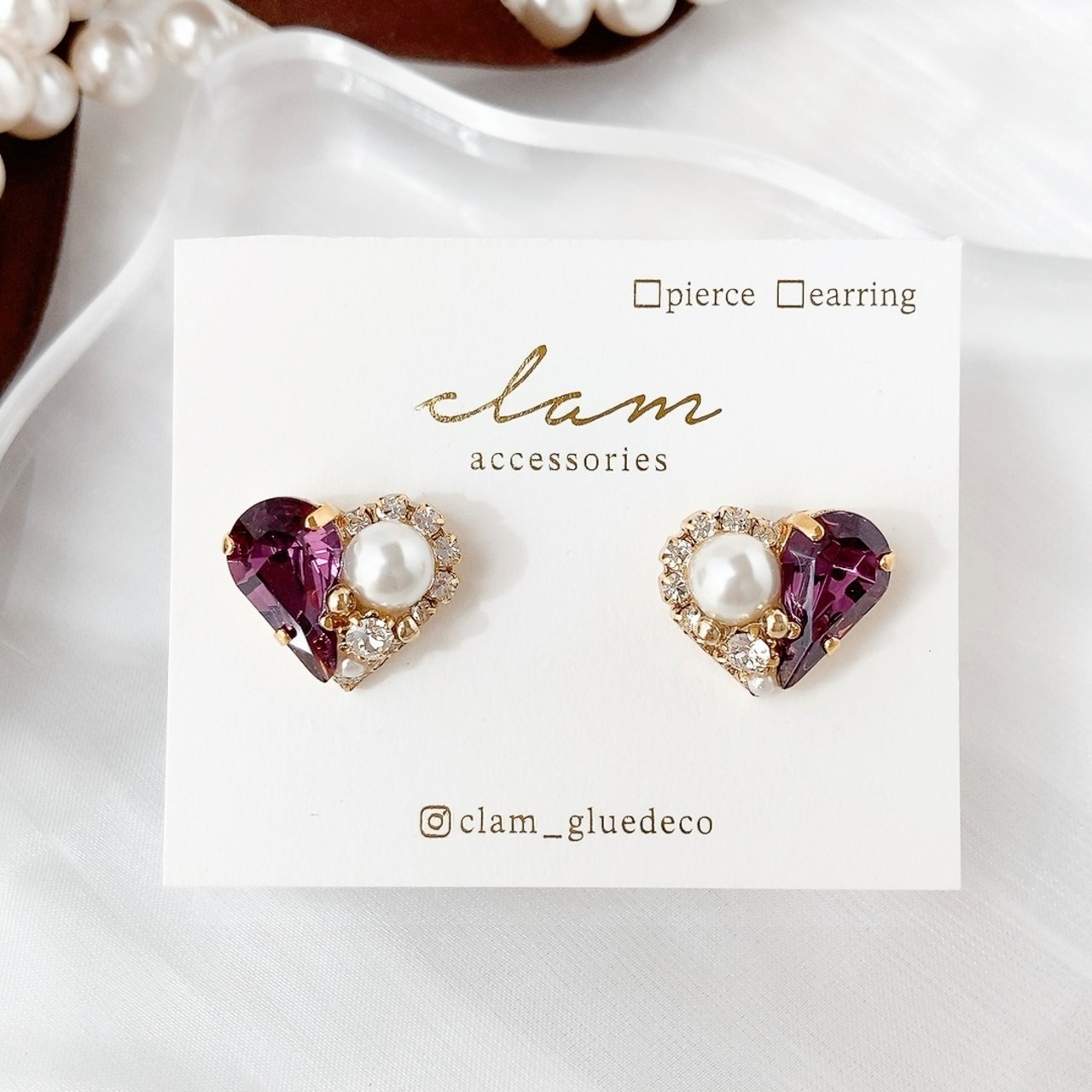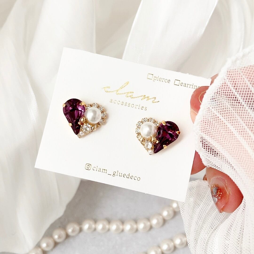 スワロフスキー社のクリスタルとクリスタルパールの可愛らしいハートモチーフ❤️