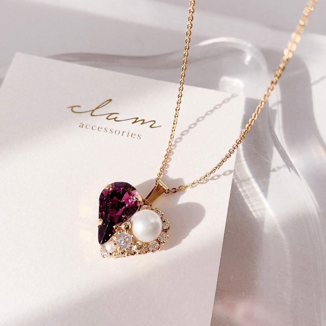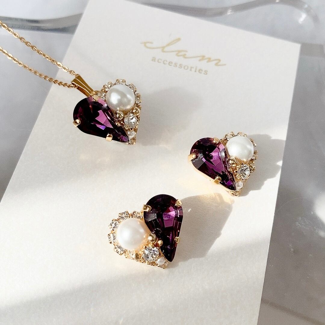 【セット商品】大人の可愛いを叶える アメジストハートのピアス/イヤリング&ネックレス 2月誕生石カラー