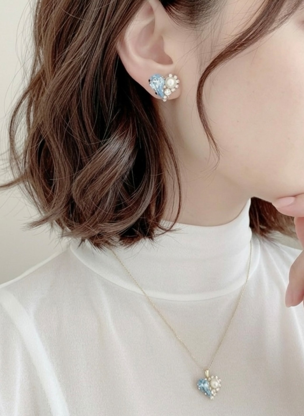 【セット商品】爽やかアクアマリンハートのピアス/イヤリング&ネックレス