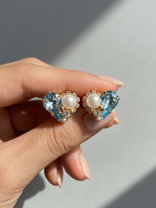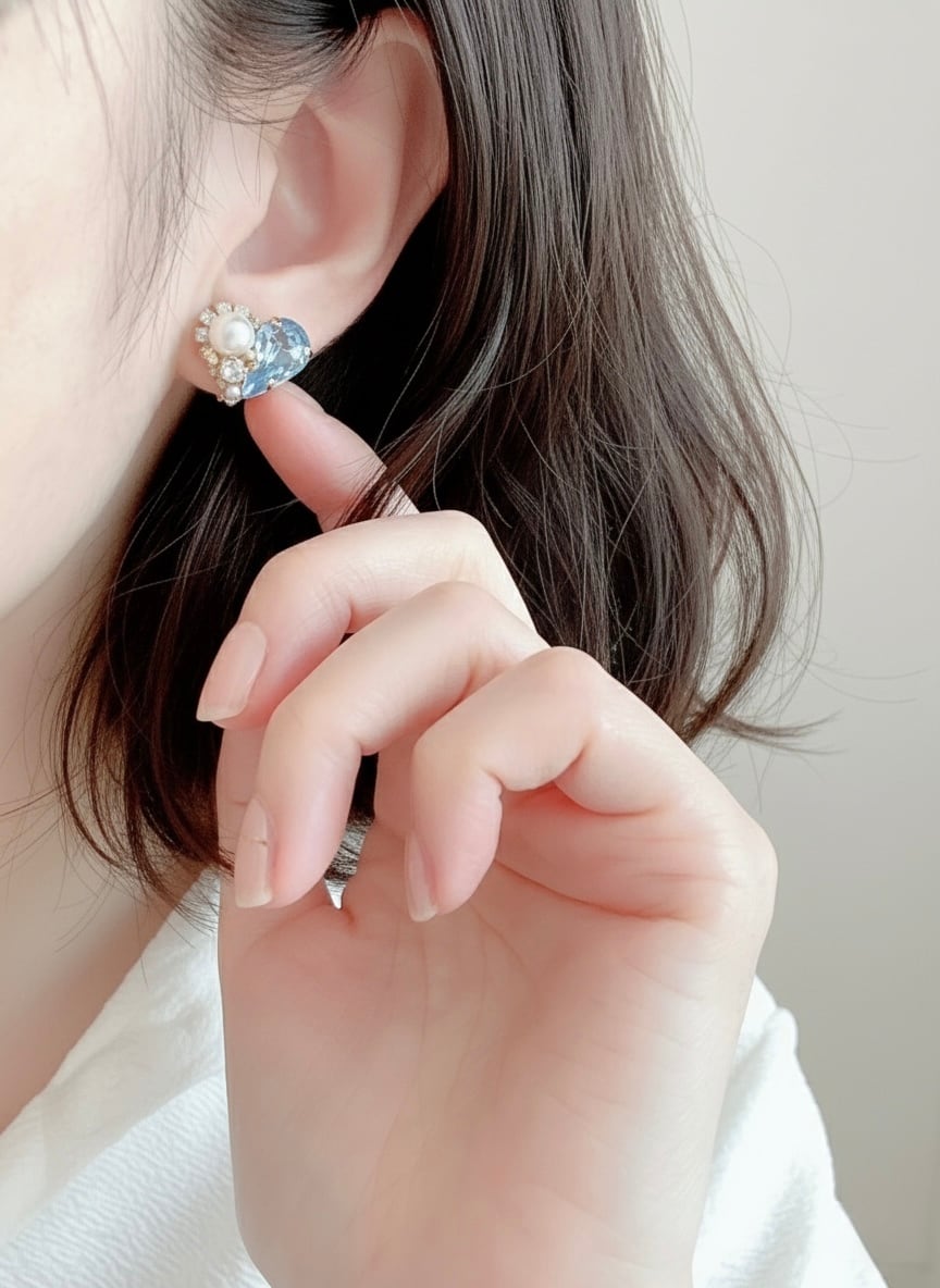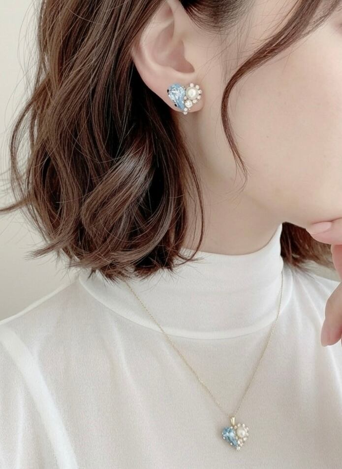 スワロフスキー社のクリスタルとクリスタルパールが描く可憐なハートモチーフ❤️