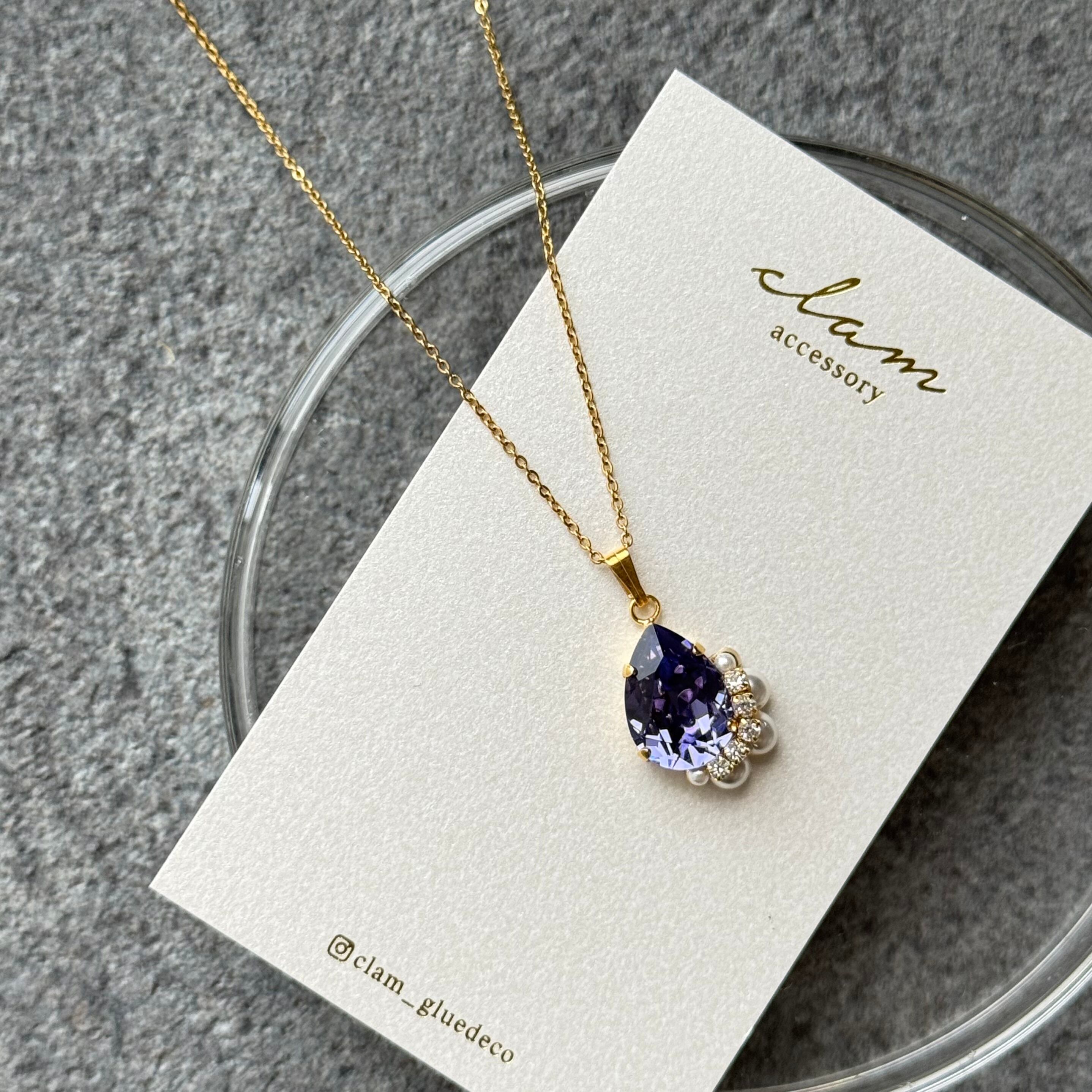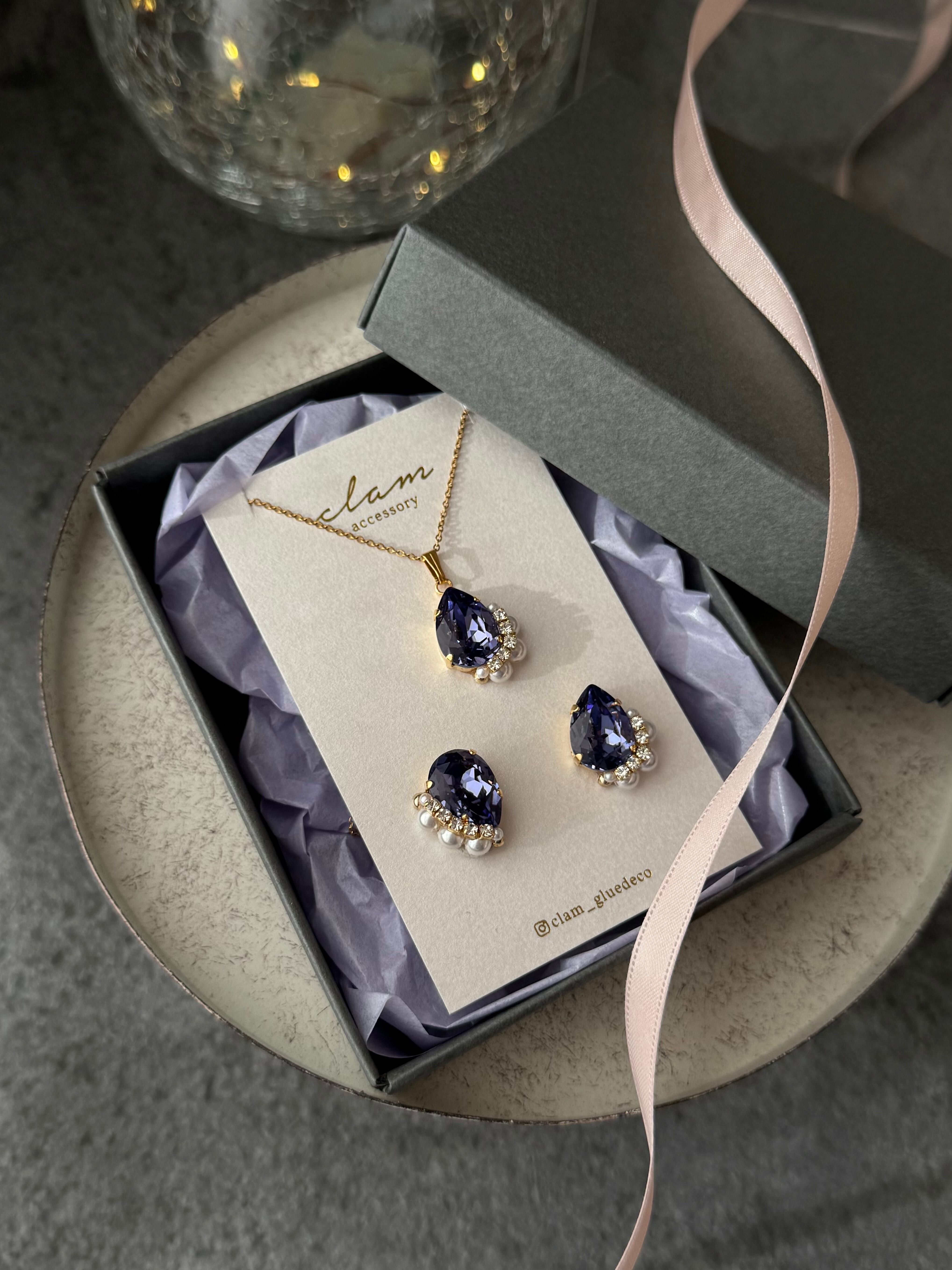 タンザナイトビジュー イヤリング/ピアス & ネックレス セット