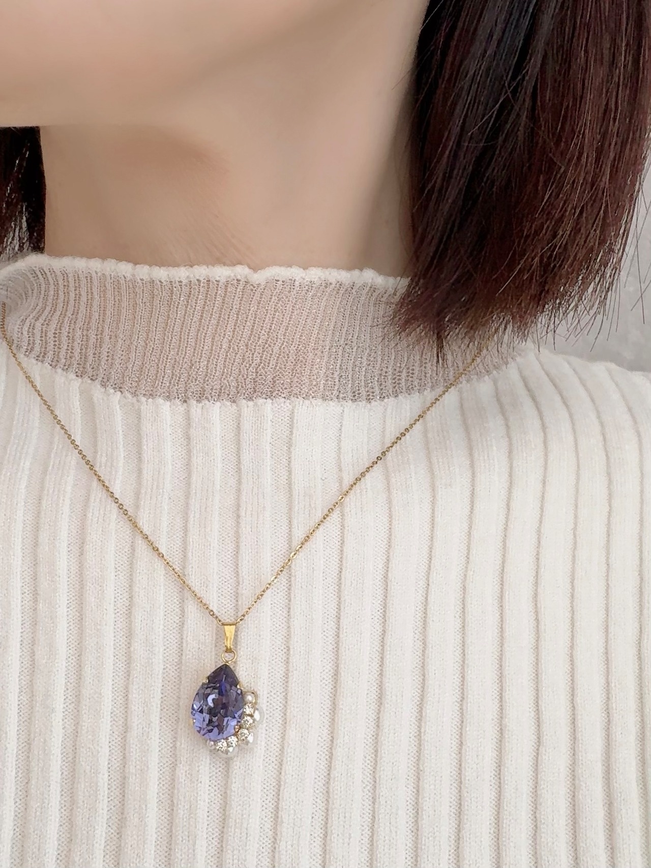 ネックレスは、呼吸に合わせてそっと光るひと粒。