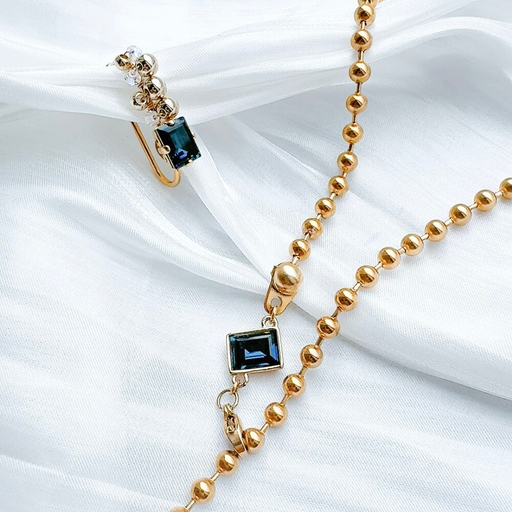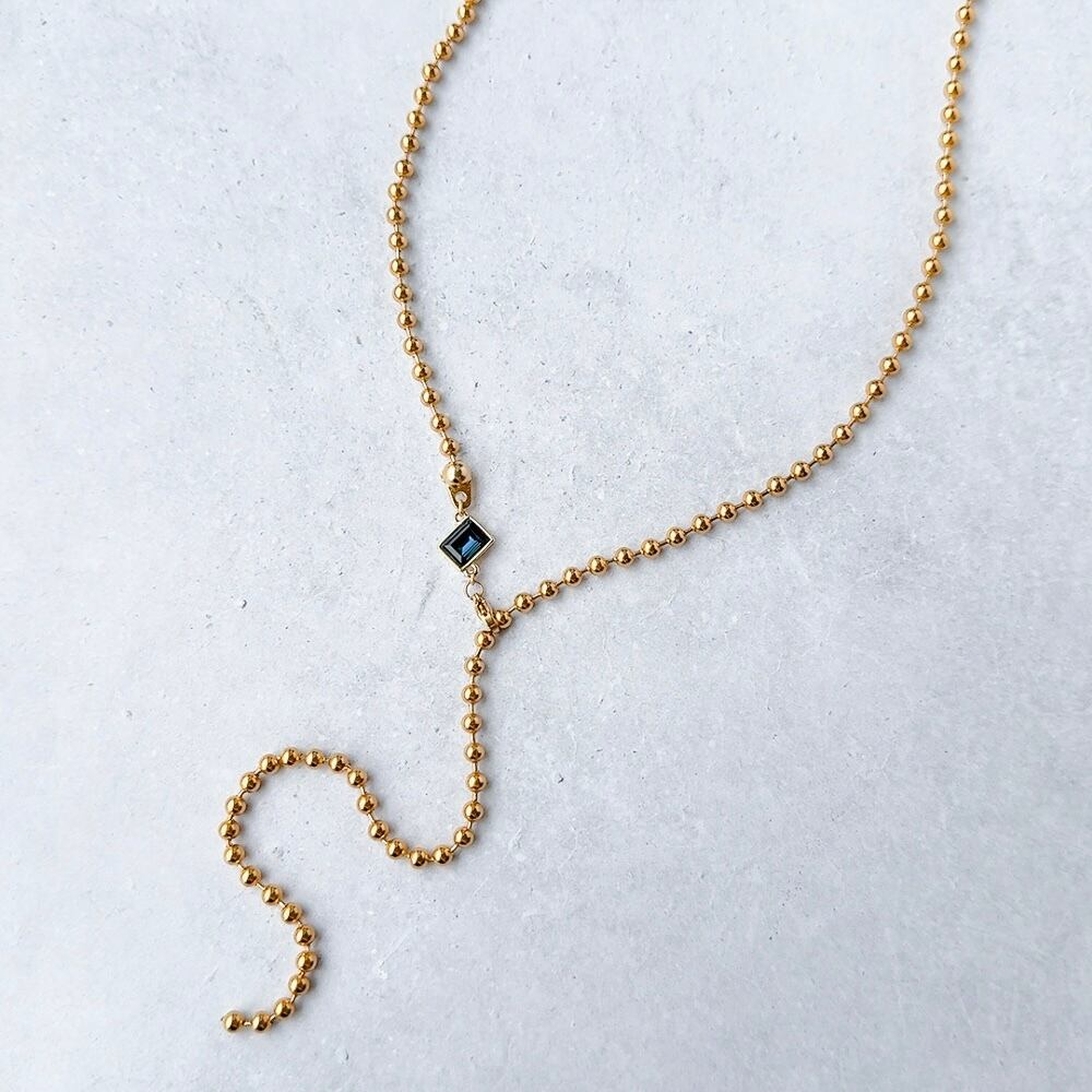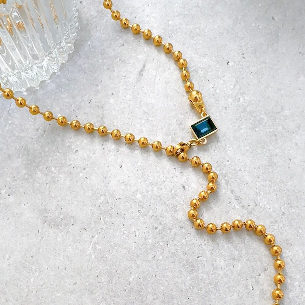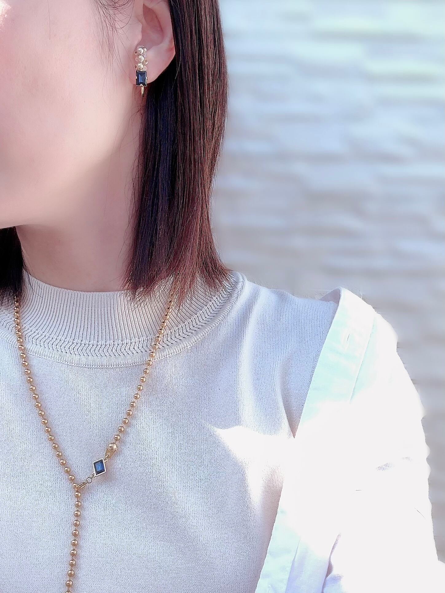 ネイビービジューとボールチェーンの自在Y字ネックレス