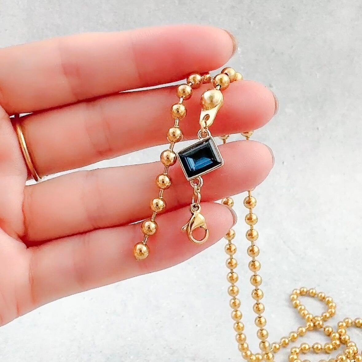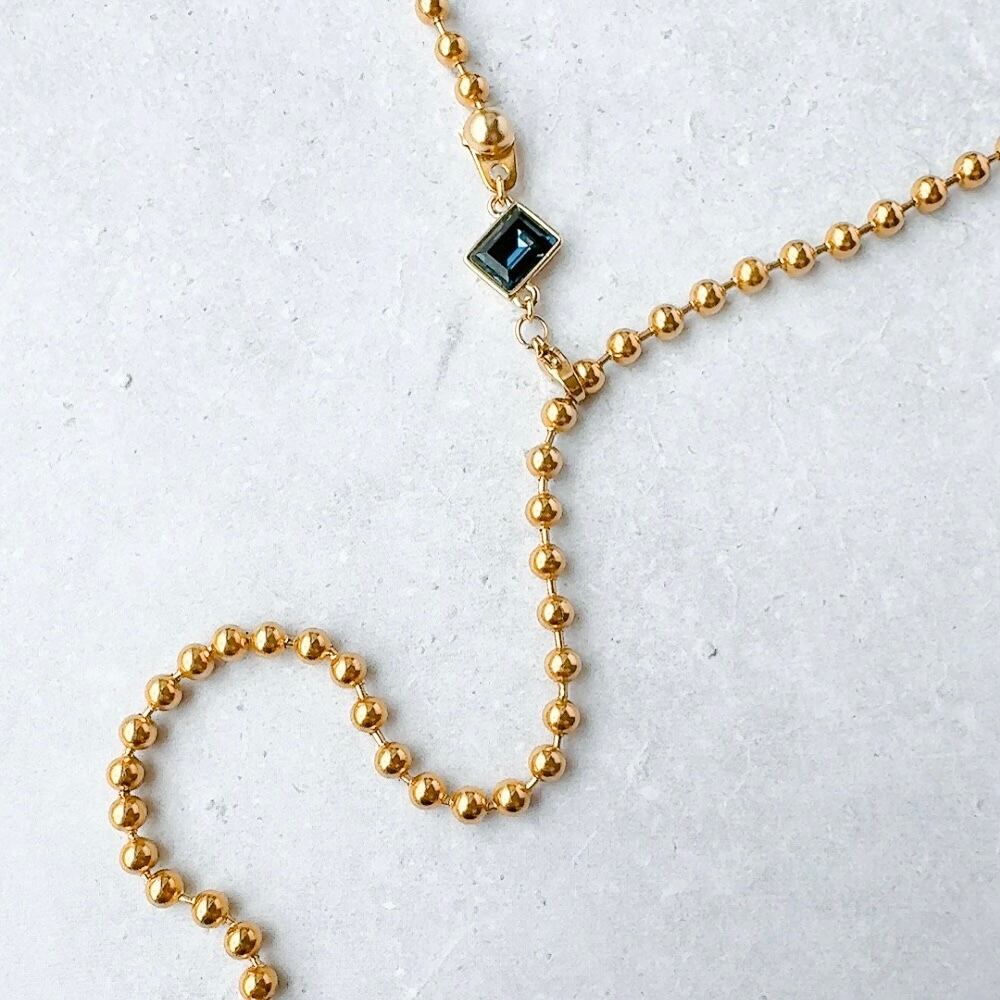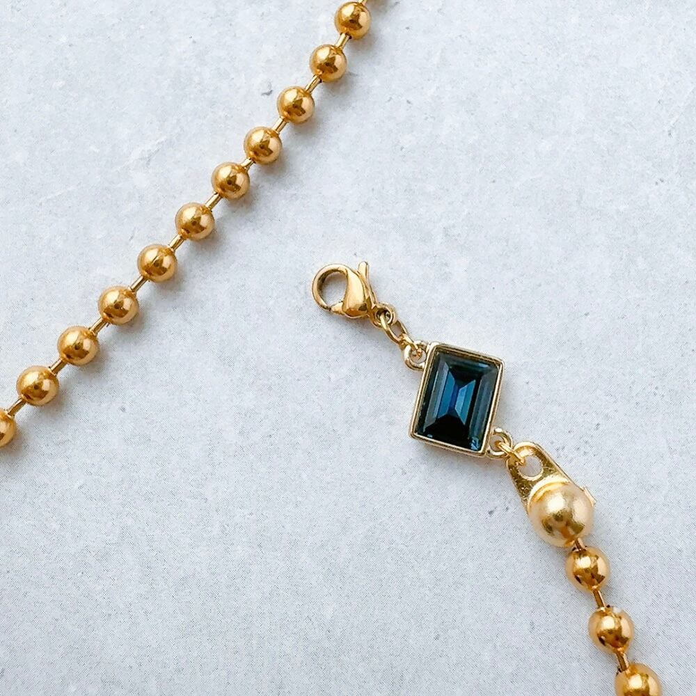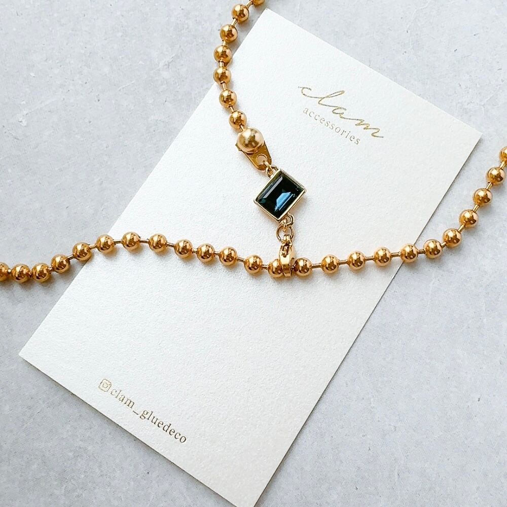 ネイビービジューとボールチェーンの自在Y字ネックレス