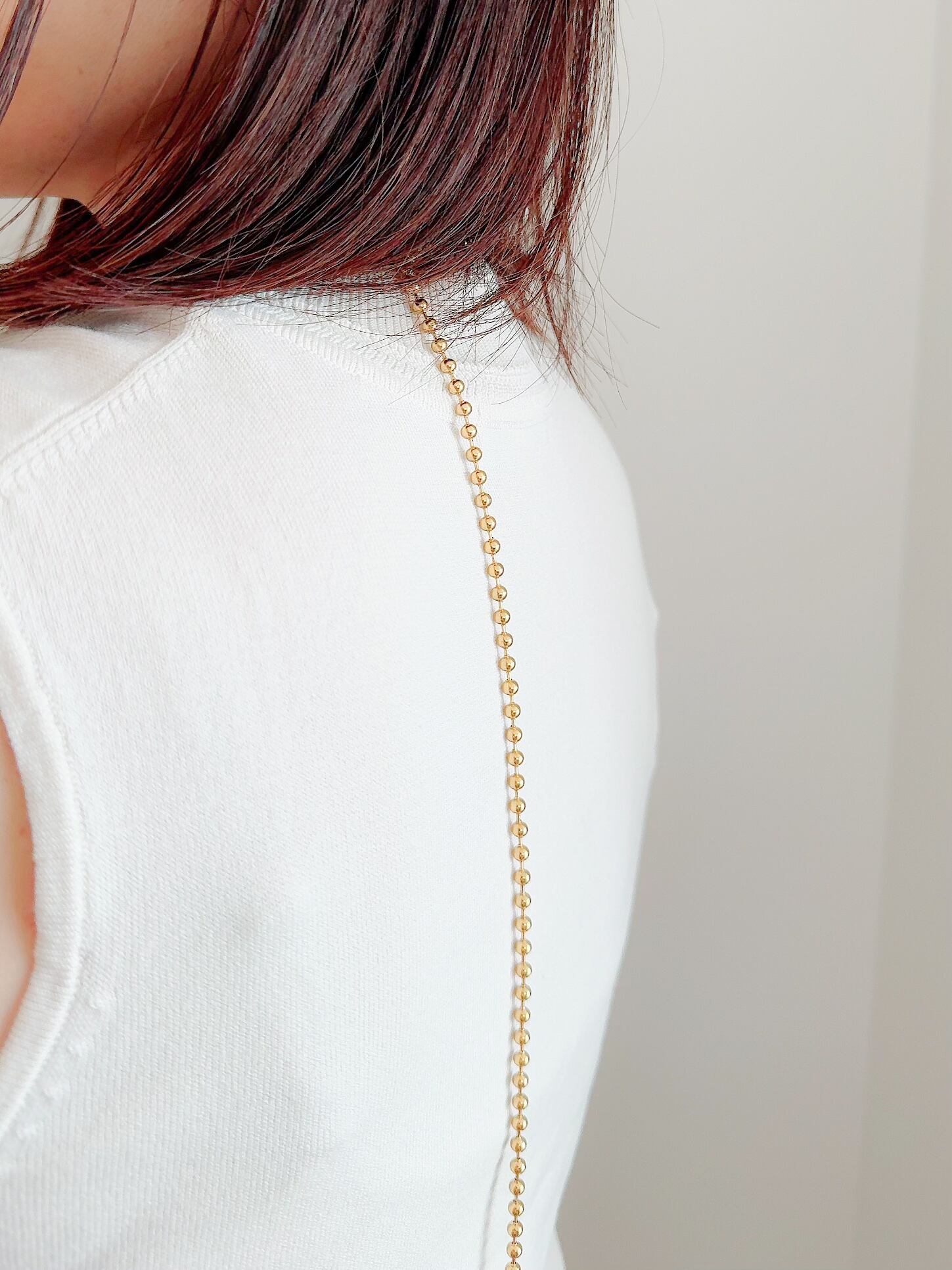 華やかなゴールドのボールチェーンが、高級感と動きを加えます
