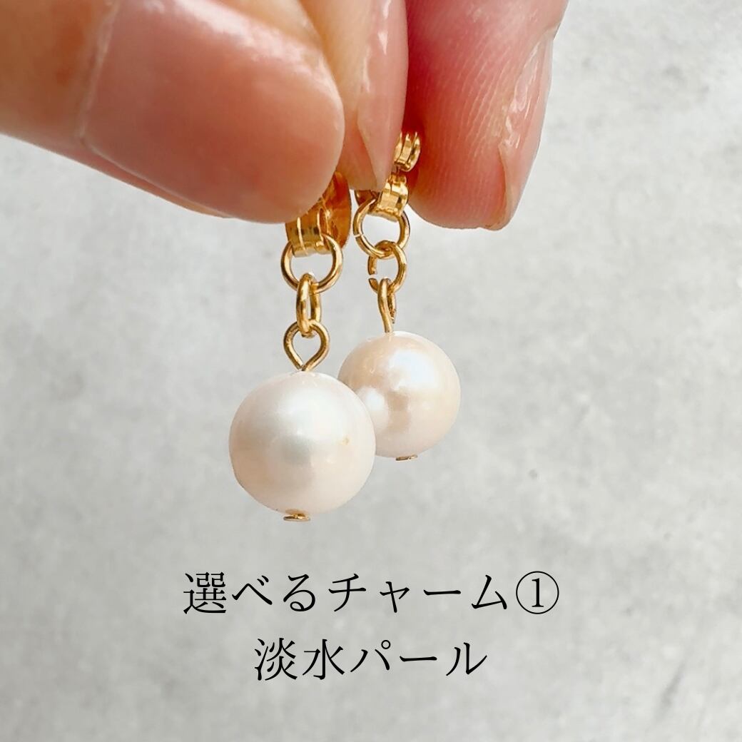 フォーマルな場面には、大粒の淡水パールのチャームを付けて、気品あふれるスタイルに仕上げることができます。