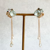休日のカフェ巡りや友人とのランチには、グリーンアメジストとパールのゆらゆらチャームを加えることで、フェミニンで柔らかい雰囲気を演出。