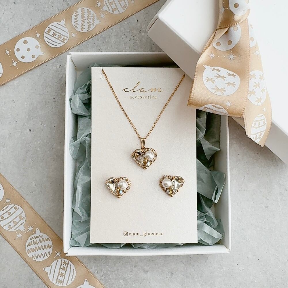 14kgfハートネックレス&ピアス/イヤリング (クリスタル)