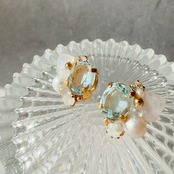 透明感あふれる天然石スカイブルートパーズの耳飾り