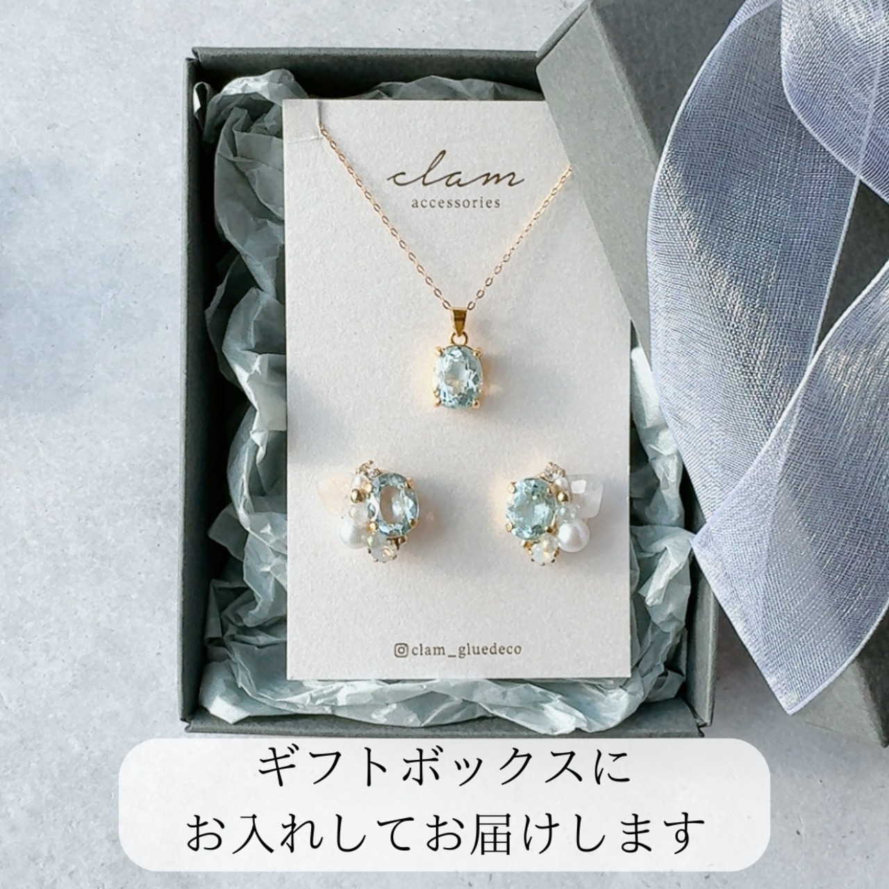 澄んだ空と光をイメージし、清らかで洗練された印象を耳元に添えます。