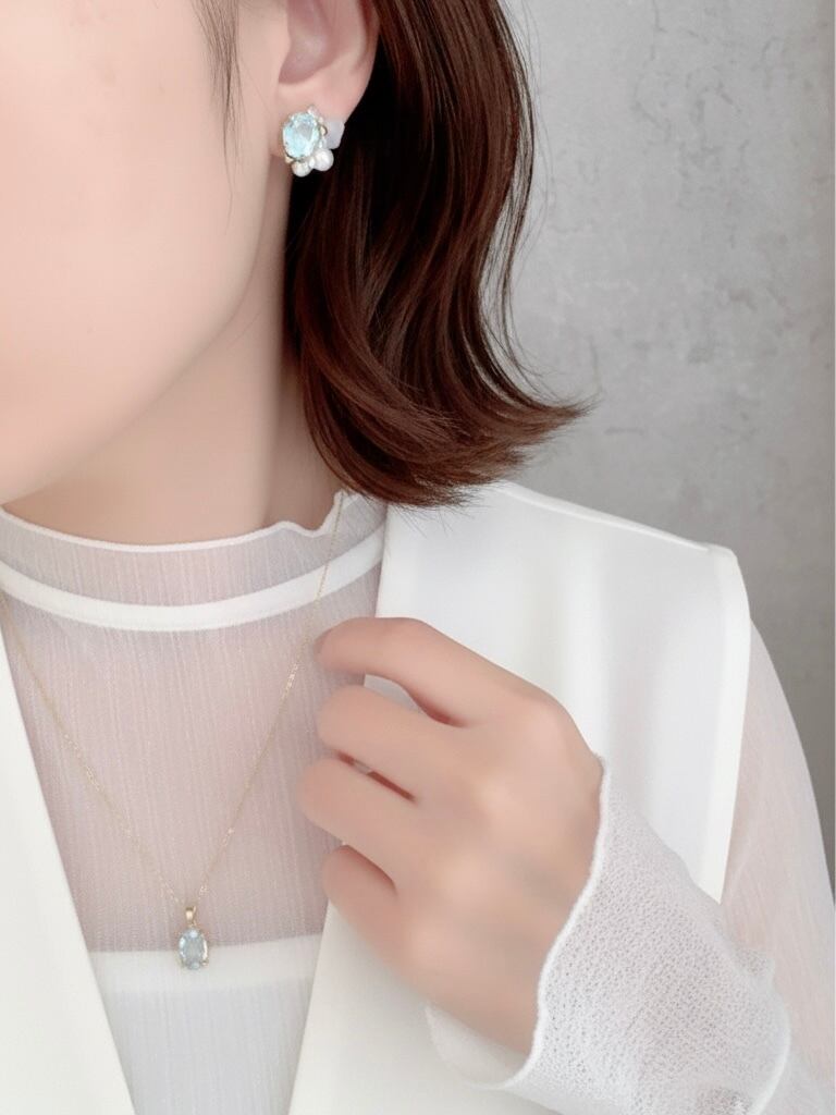 透明感あふれる スカイブルートパーズのネックレス&耳飾り